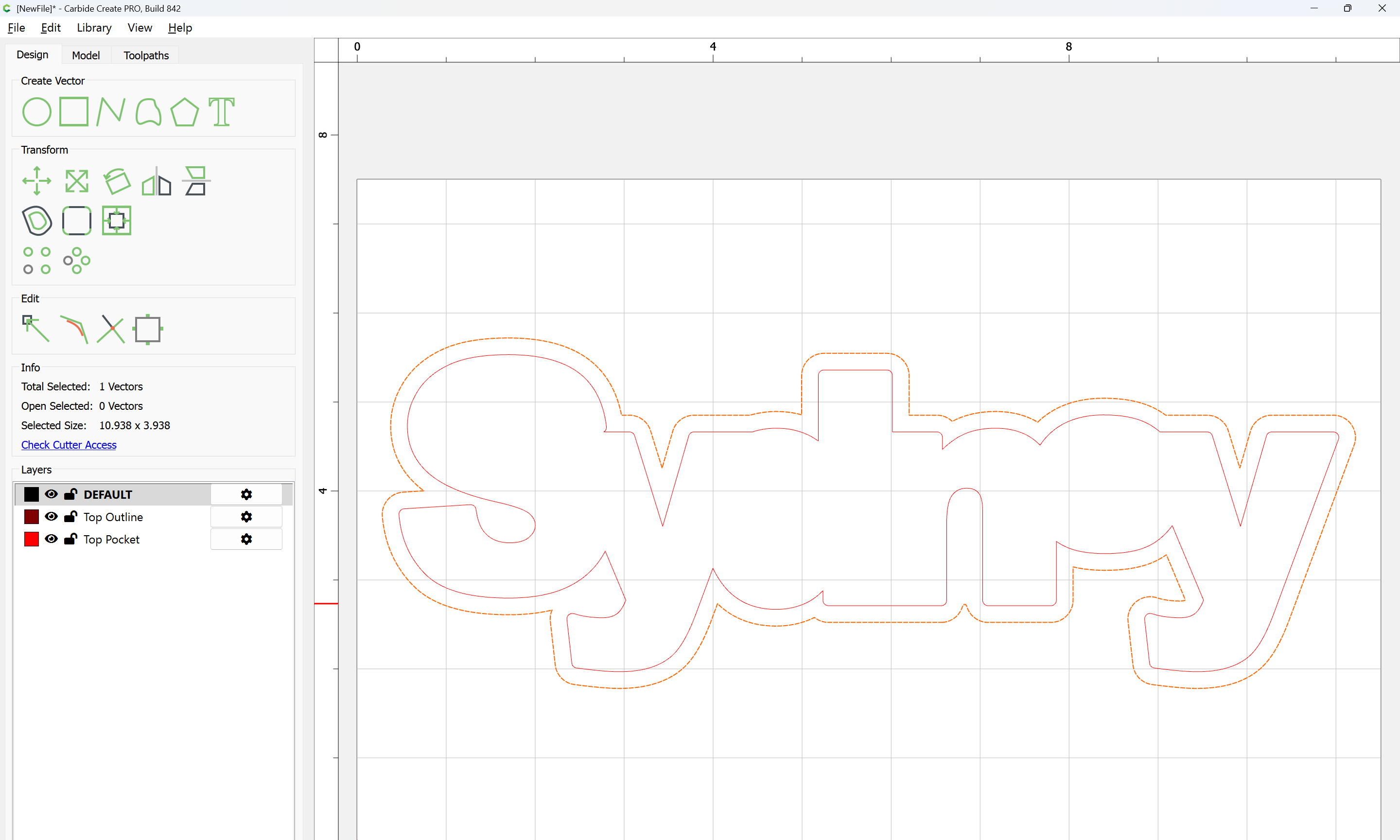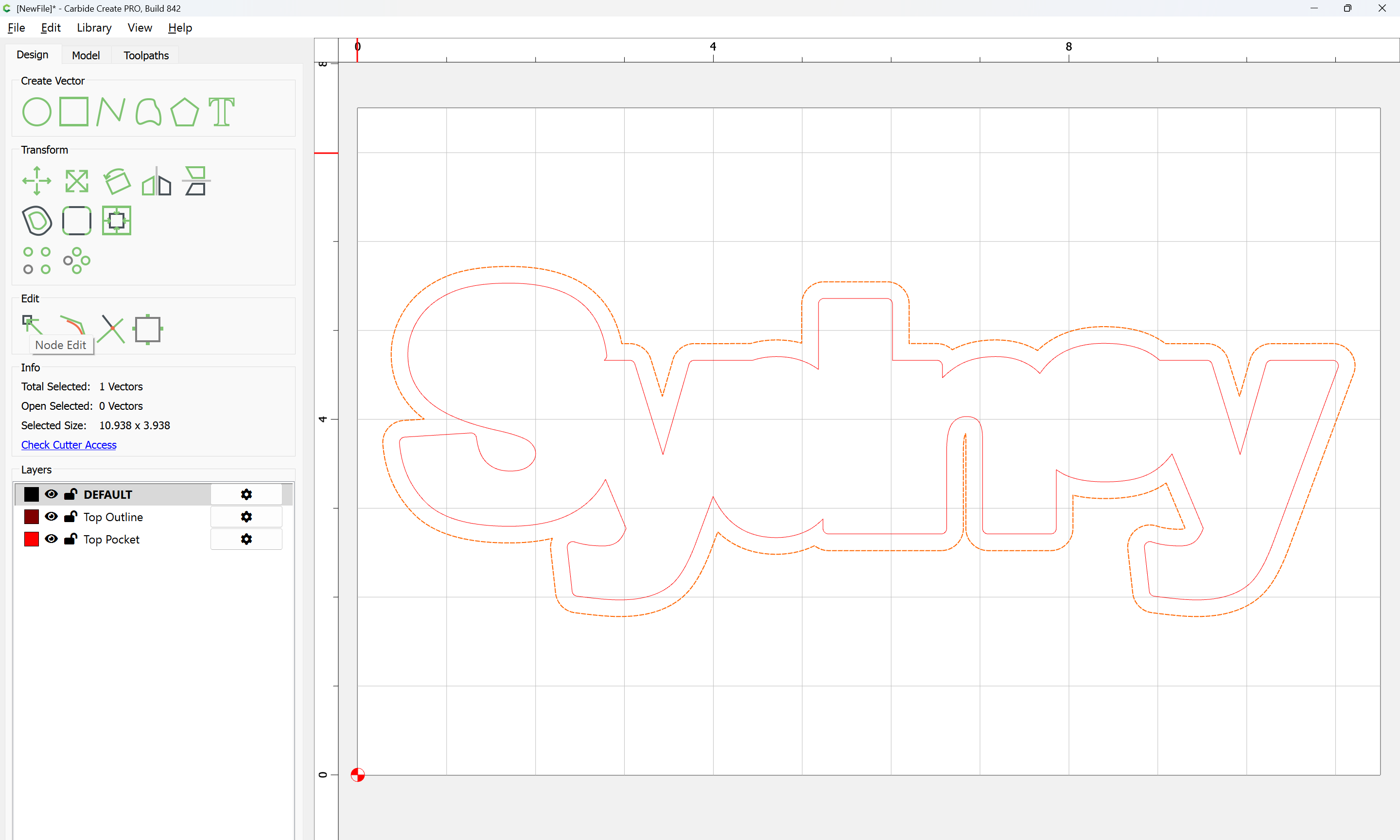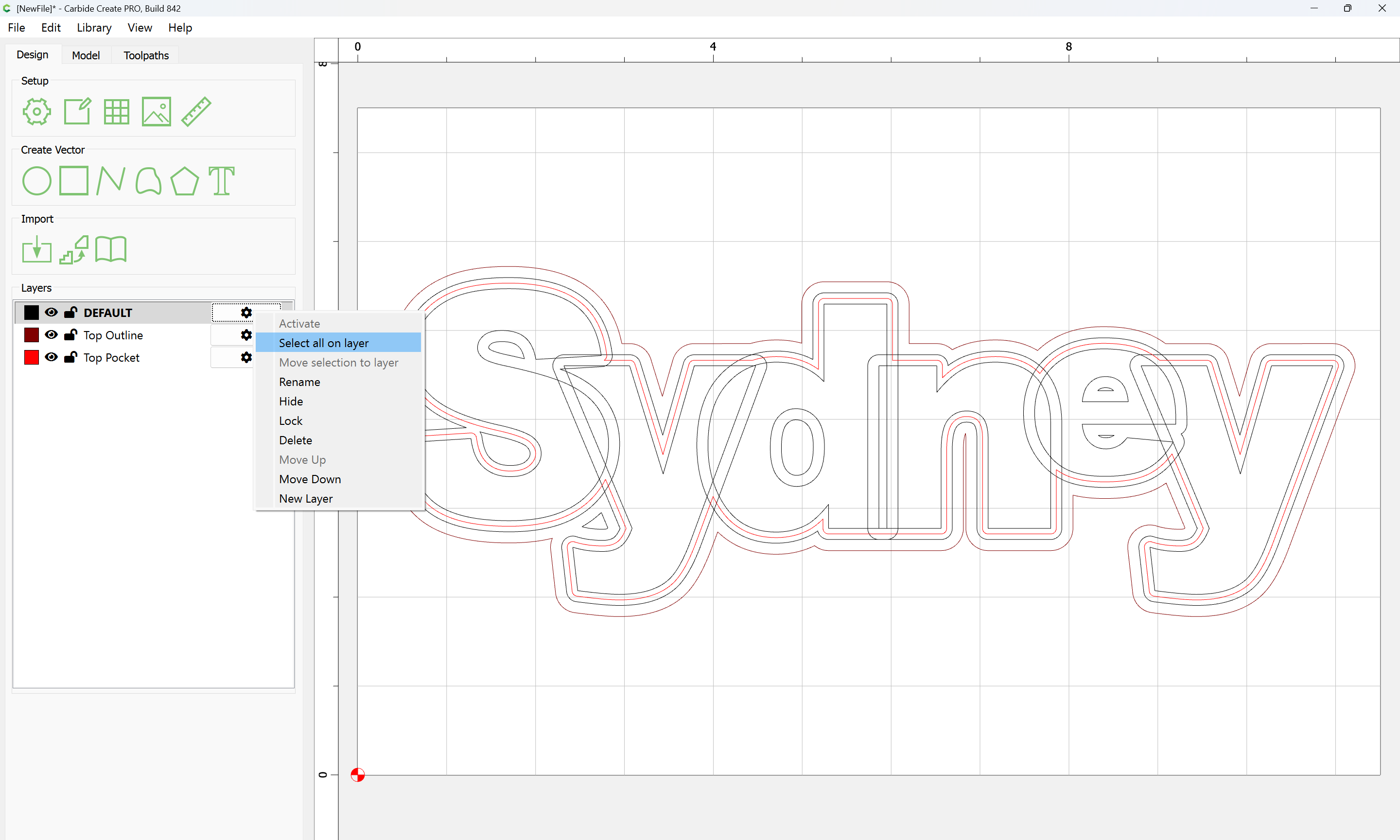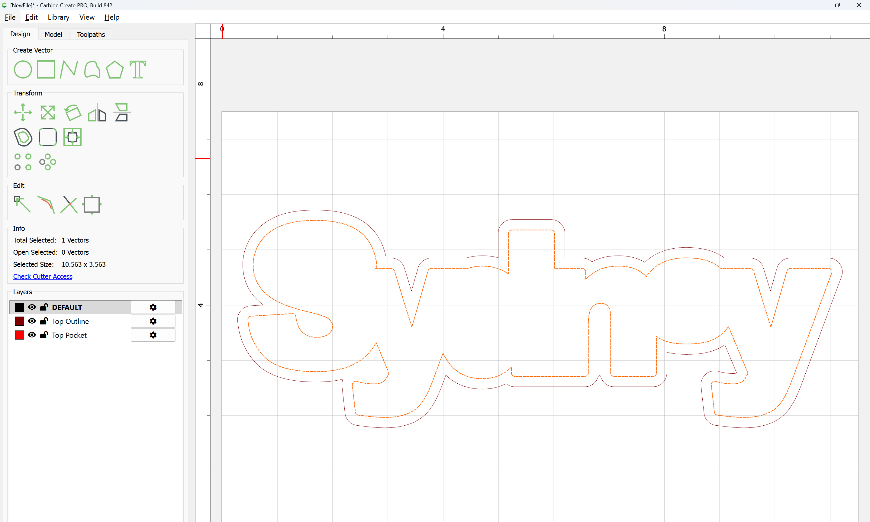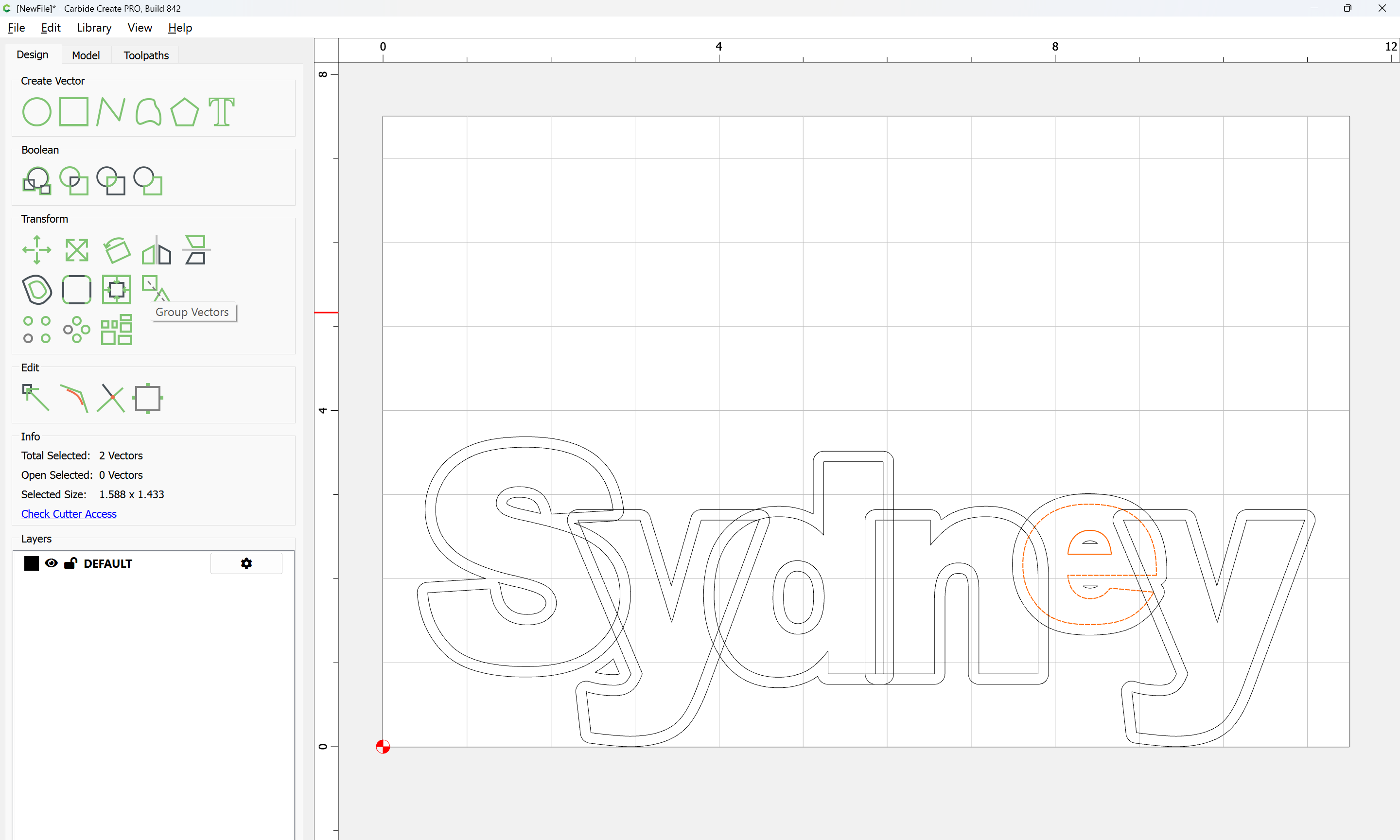 The letterforms may now be spaced out and cut out of a suitable thickness of material with suitable toolpaths — this is left as an exercise for the reader — if any difficulties are encountered, upload the file and we will look into it.