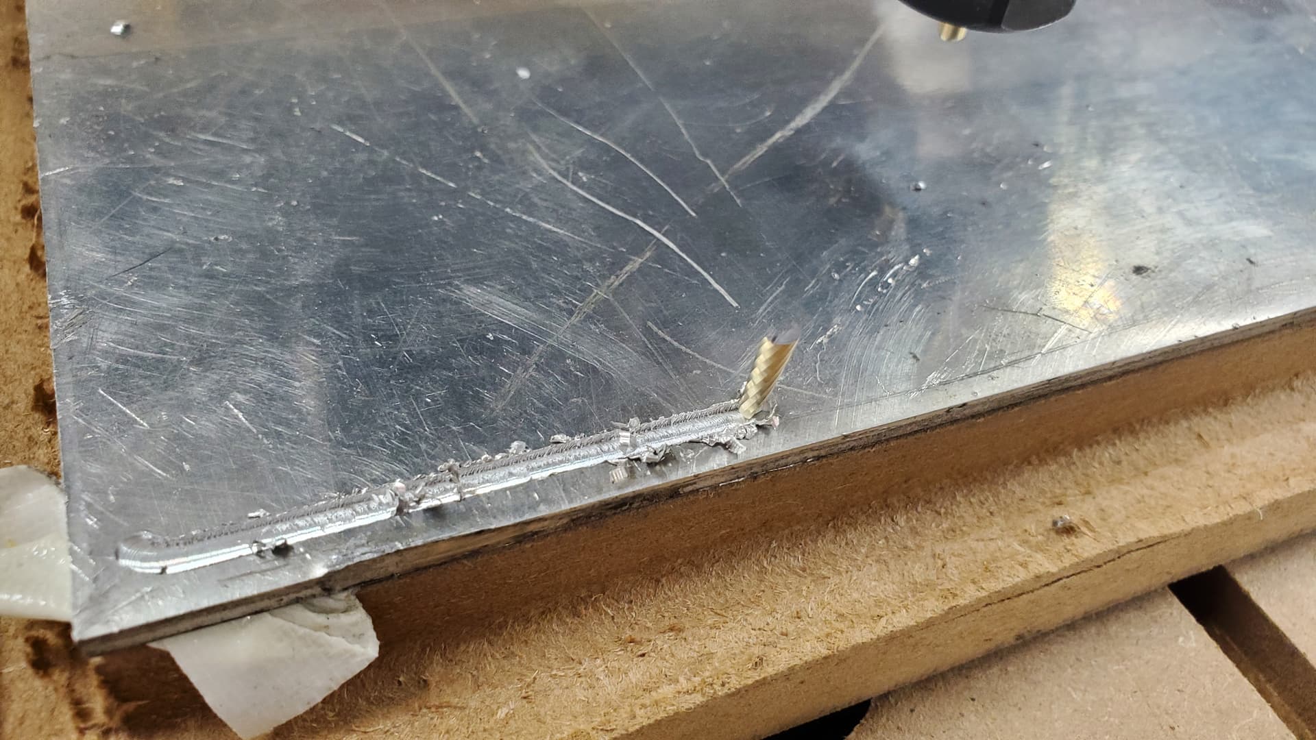 Well, my first cut didn’t start off too well. I used these settings for the 274 bit but seconds into it the bit snapped. Perhaps this material is too industrial for my application? I have no idea what type of aluminum this is. I’m using an 1/8" bit on 1/8" thick material.