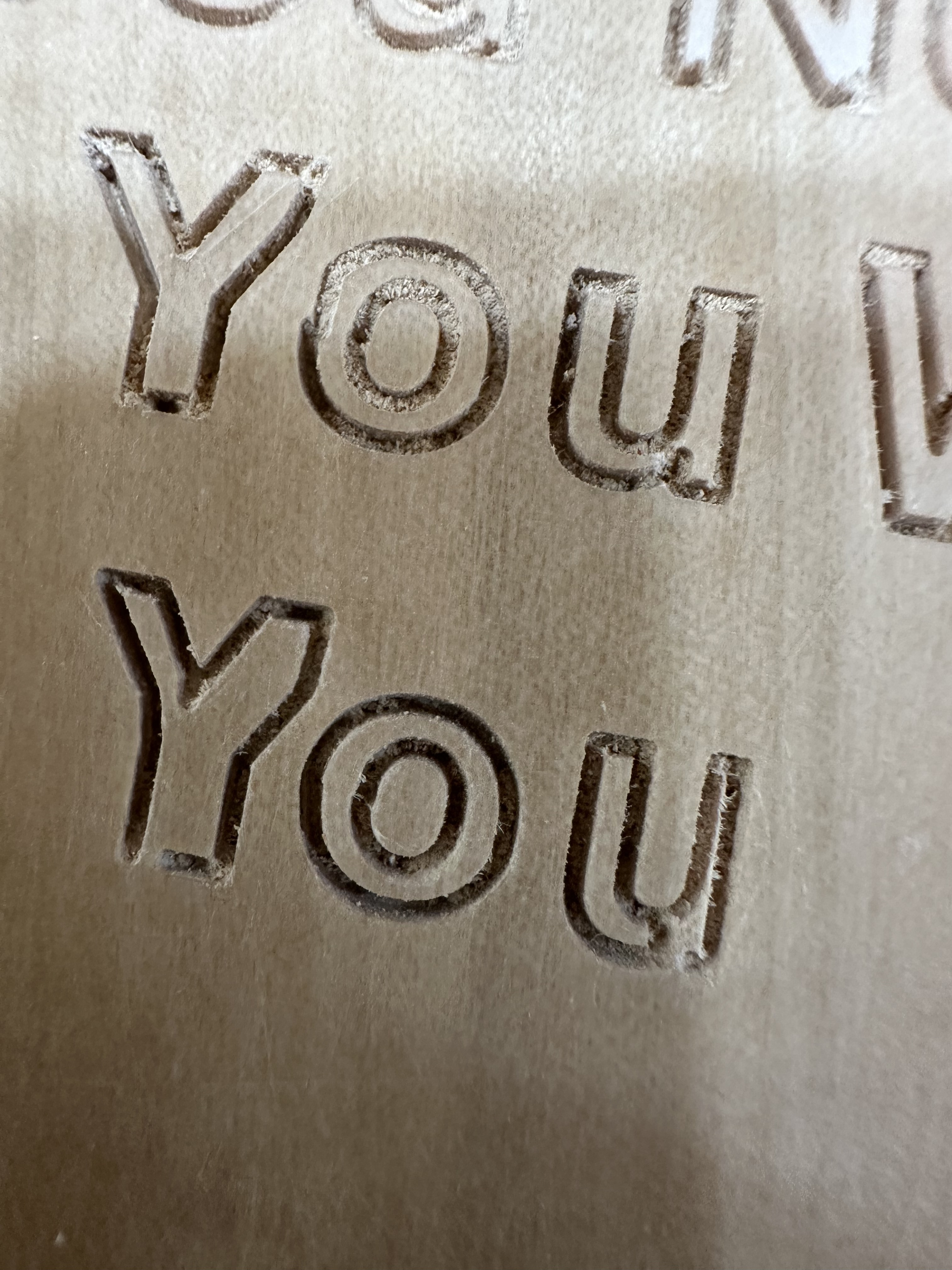 See pics below please. Several letters were switched from atrial to a cartoonish. I also had a problem w/doing 3 shallow passes to avoid waste build up and several lines were triple carved . Thoughts?