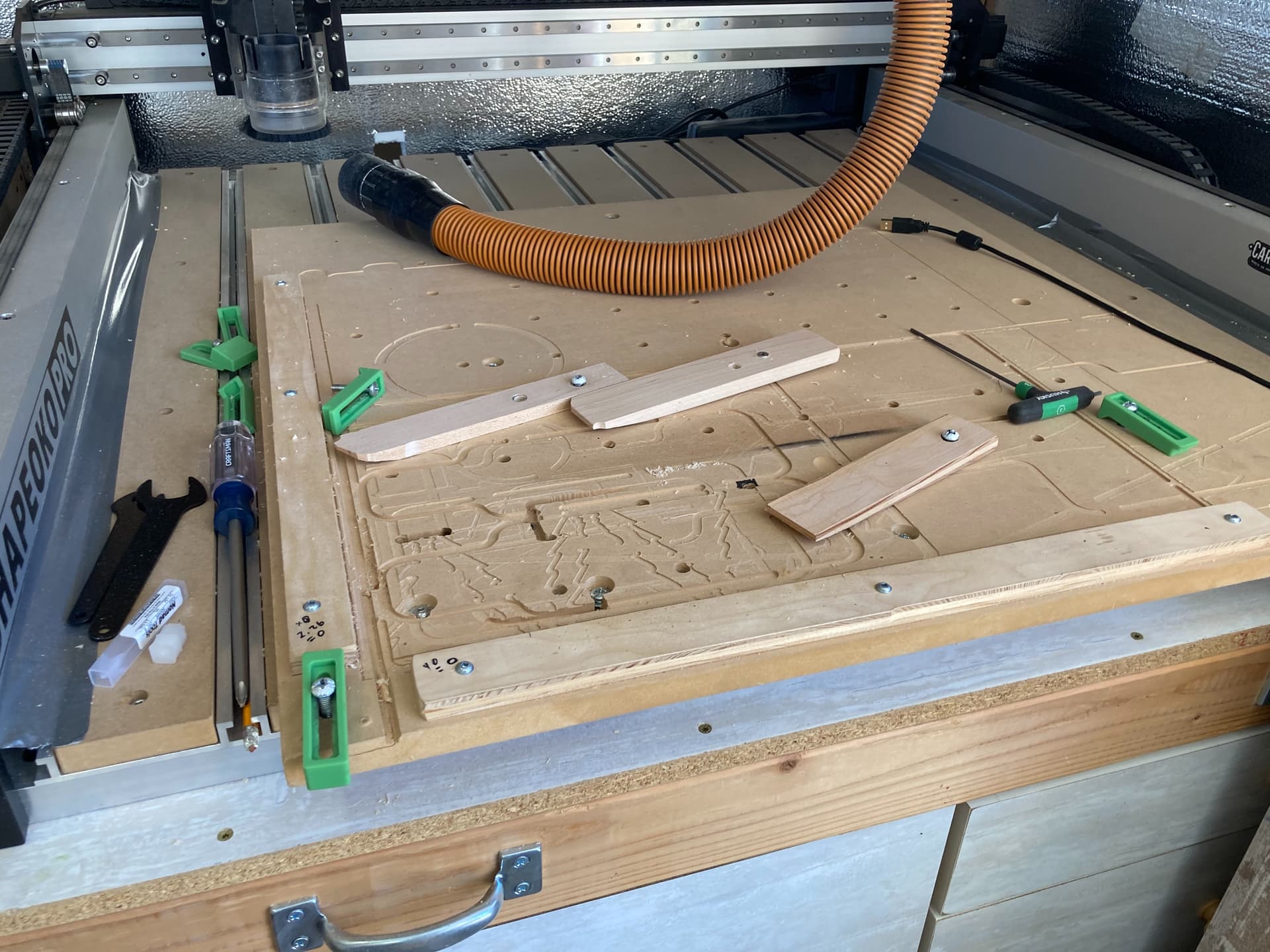 On the XXL Pro I frequently use wasteboards over the MDF when I want to use the tape and glue hold down method, or if I want to screw down a project without thinking too much about the spacing of the holes. I’ll usually cut right on the mdf when clamping mechanically.