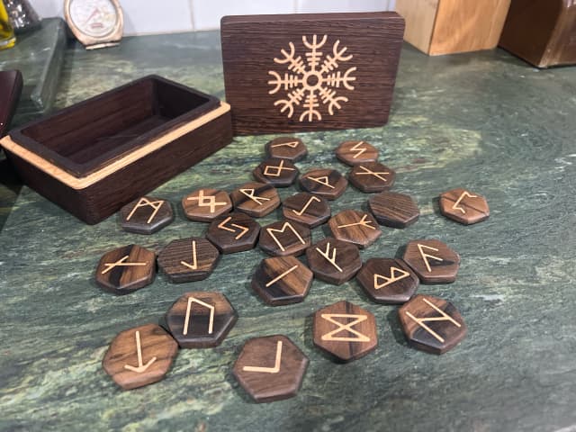 I’m really not sure. She asked me to make her a rune set, so here we are. The Wenge is really hard wood, and I had to up my bits from 1/4" to 3/8" to get the cutting time down without breaking bits.