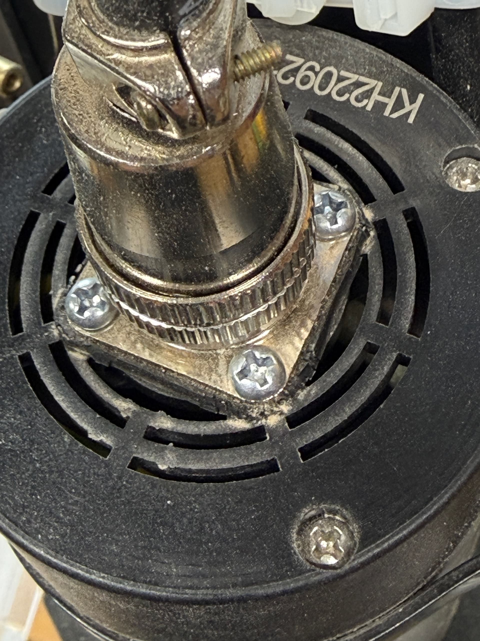 So I look and all the screws are on the top. So I don’t know, here’s a picture.Did it come underneath?I looked underneath the v f d spendle, but didn’t see anything listen