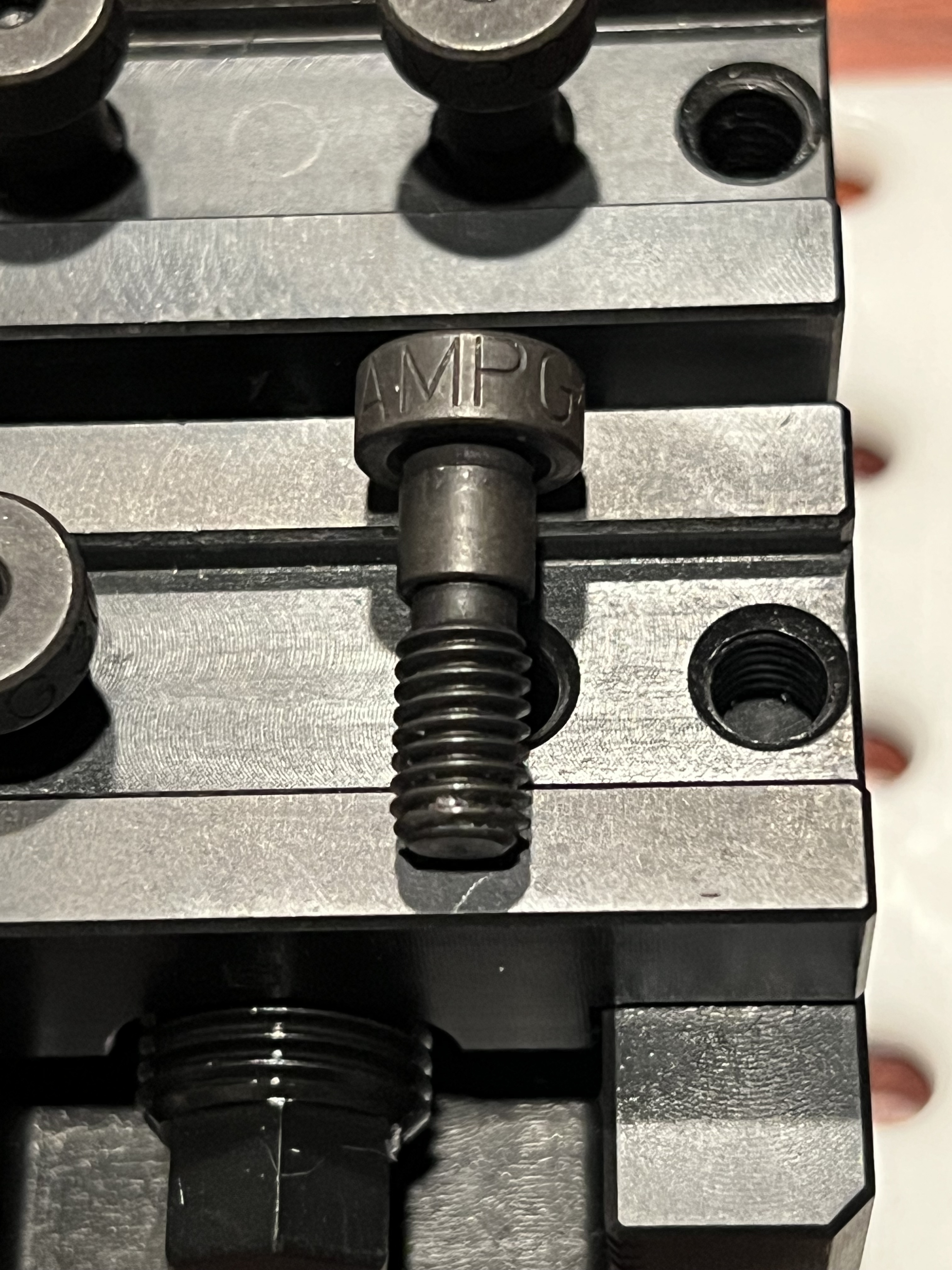We use the 4 bolts in the vise jaws as self aligning turrets. If we use a shoulder bolt we can have the “jaws” of the turrets rotate freely. The vise itself can act as the parallel for the z axis.