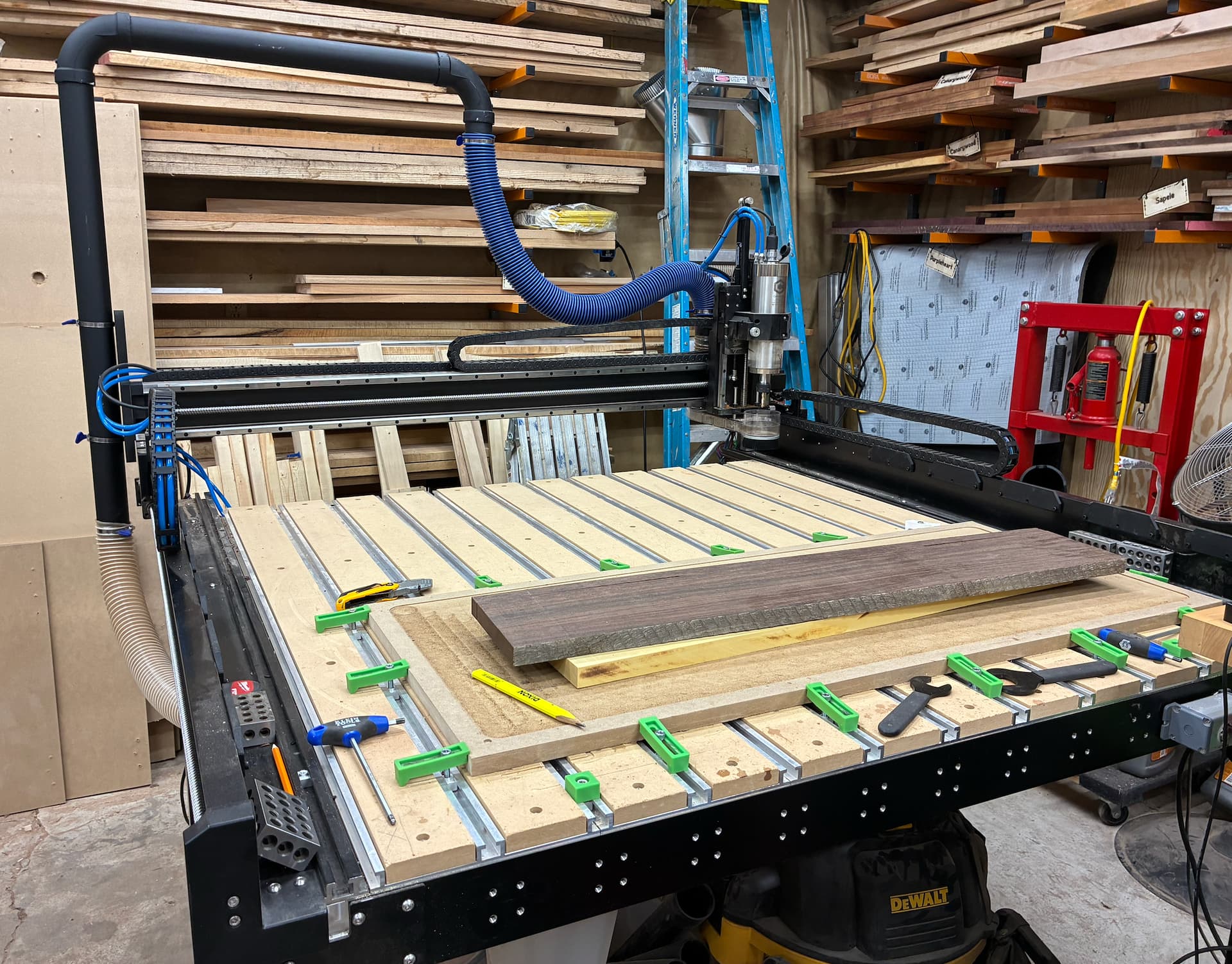 I wanted to share some of the ways we’ve been customizing our Shapeoko 5 in the shop, in the hopes that some of you might find it useful for your own setups. All of this is driven by the notion of “what would make our lives easier”.