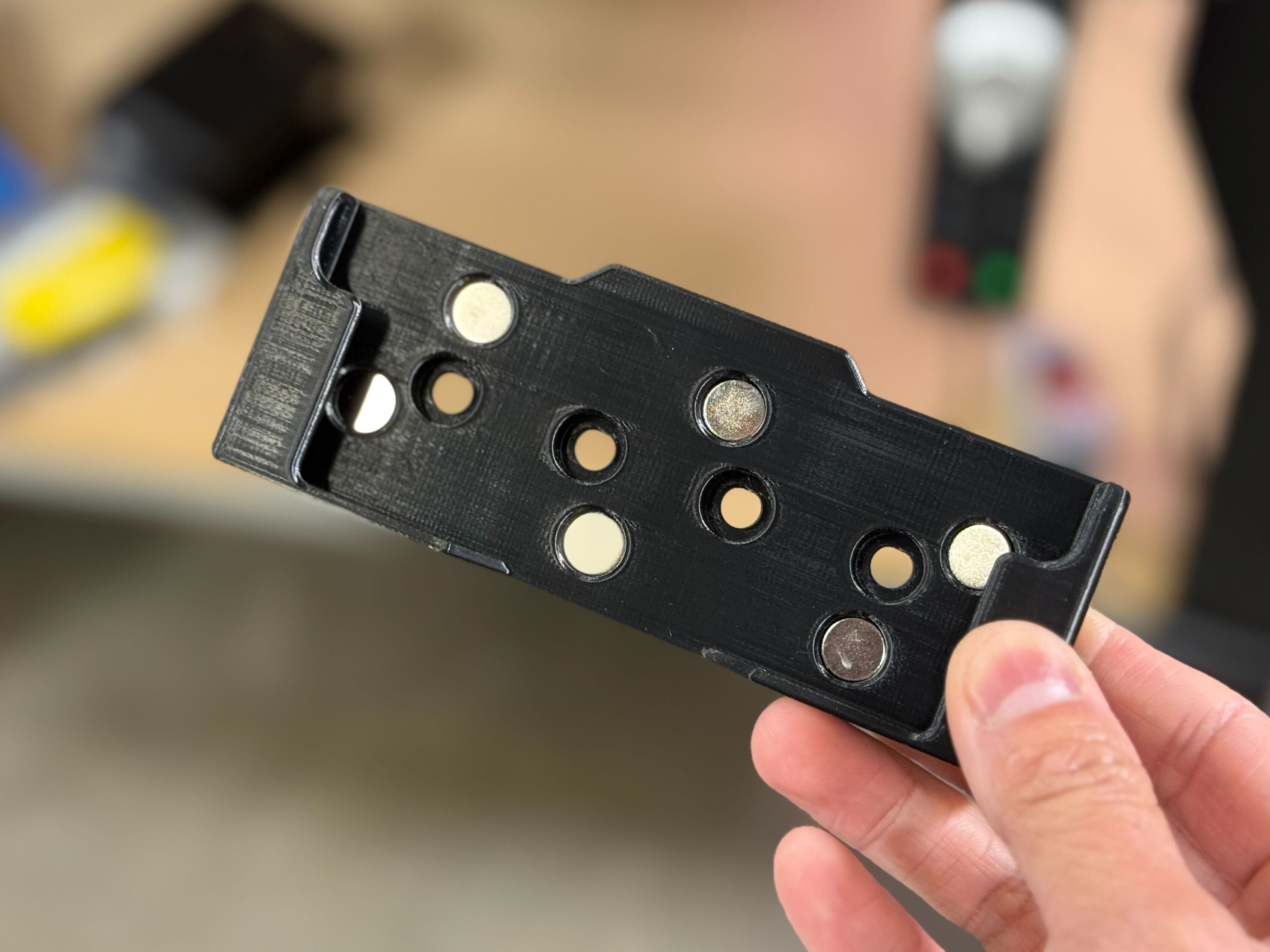 I recommend printing it on it’s side (no support needed), and I used 0.12mm layer height (Bambu slicer) so that the holes would print as round as possible (despite the overhangs). The holes might be a little snug for your magnets, so I like to use something non magnetic to help shove them in (wooden dowel, or butt end of a sharpie worked well for me). Glue is optional if your magnets fit as tightly as mine do.