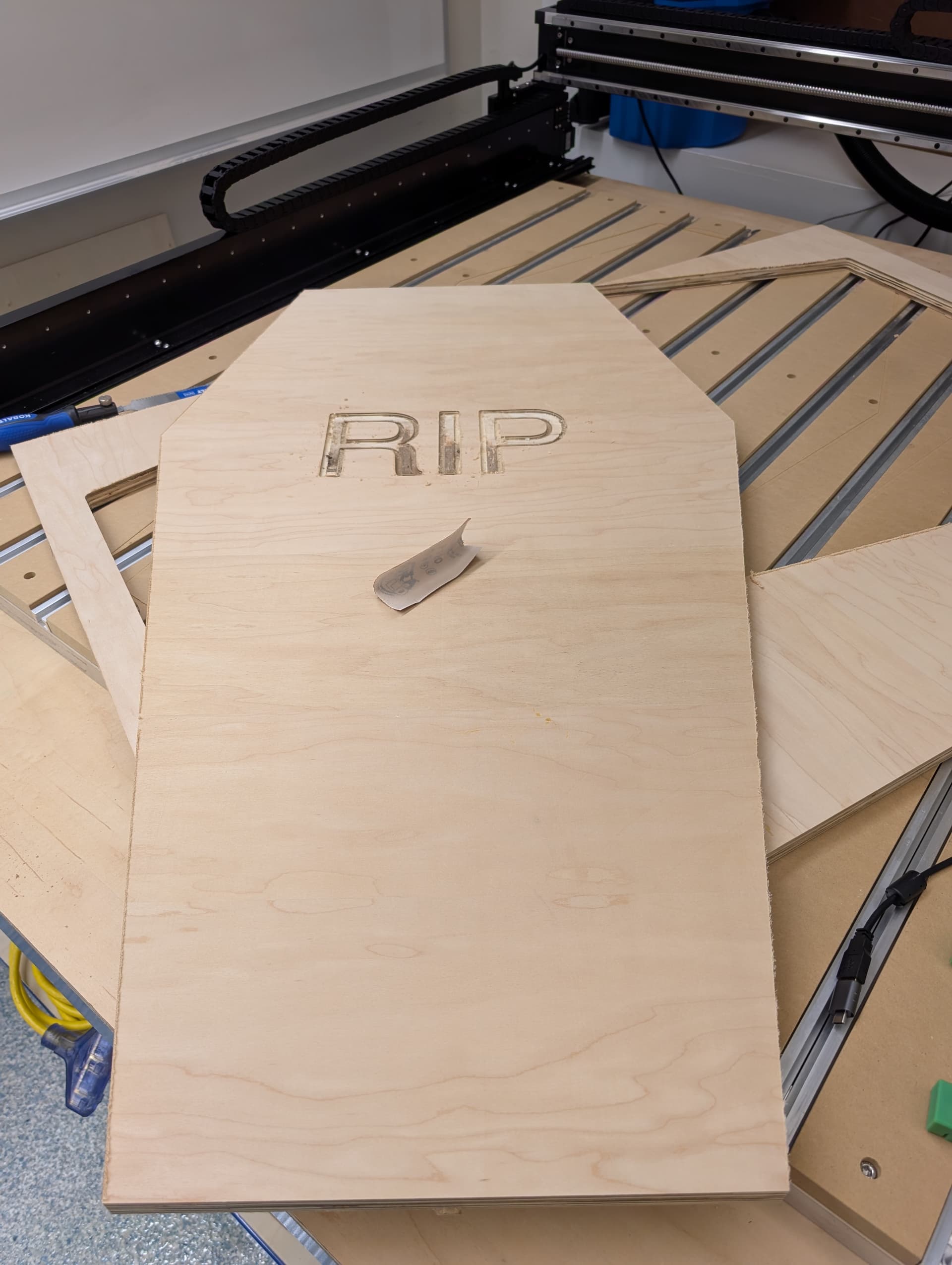 I have run two simple contours that took up most of the cutting surface. I am not exactly sure what it is for but a student wants to create a coffin for halloween.