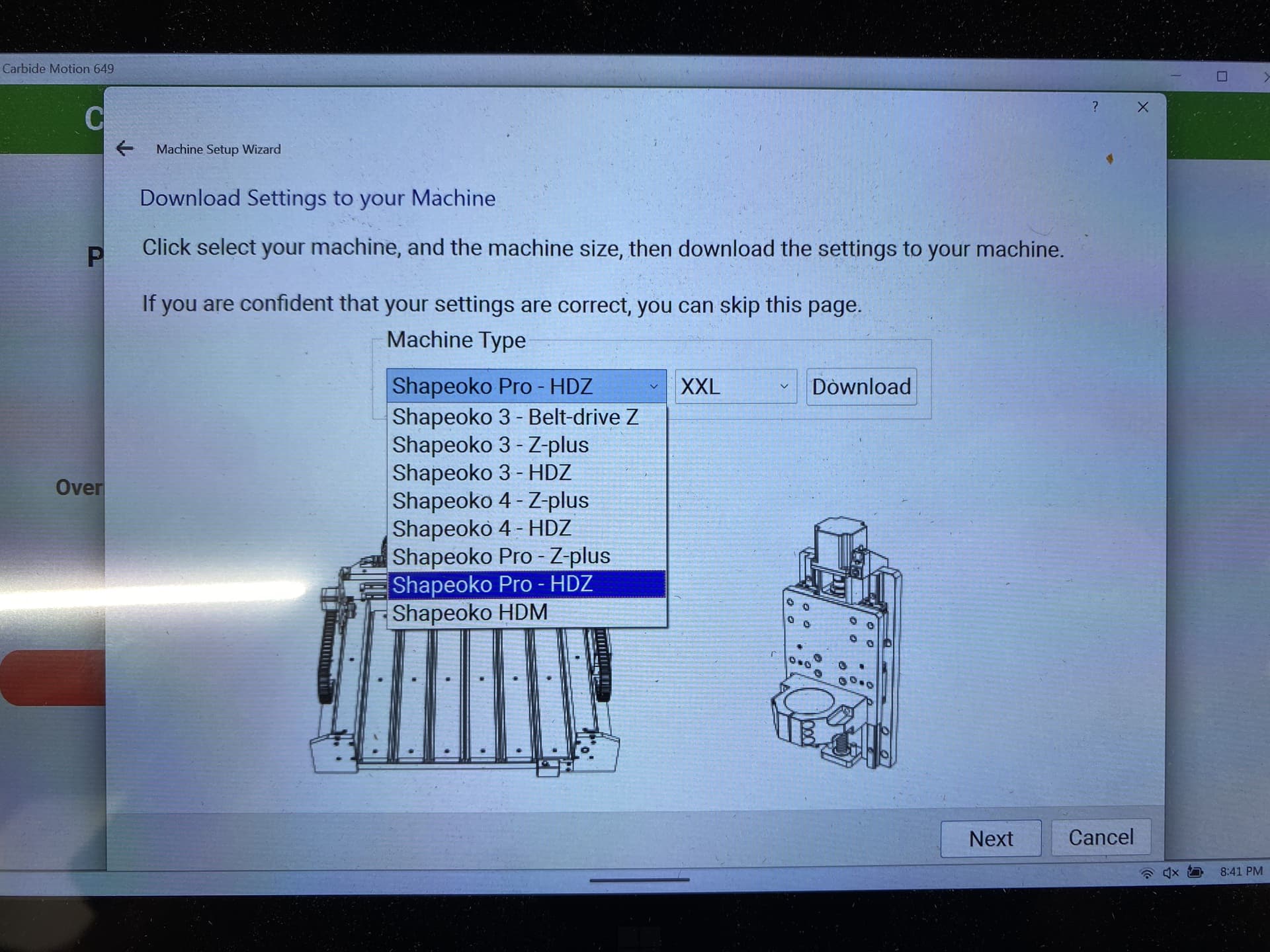 I recently purchased a used Shapeoko Pro XXL and did my first test cuts today. I wasn’t sure which Z design to select when configuring Carbide Motion–neither option (HDZ or Z-Plus) matches the design of my machine, based on the images I see online–so I selected HDZ and gave it a go with an extra wasteboard.