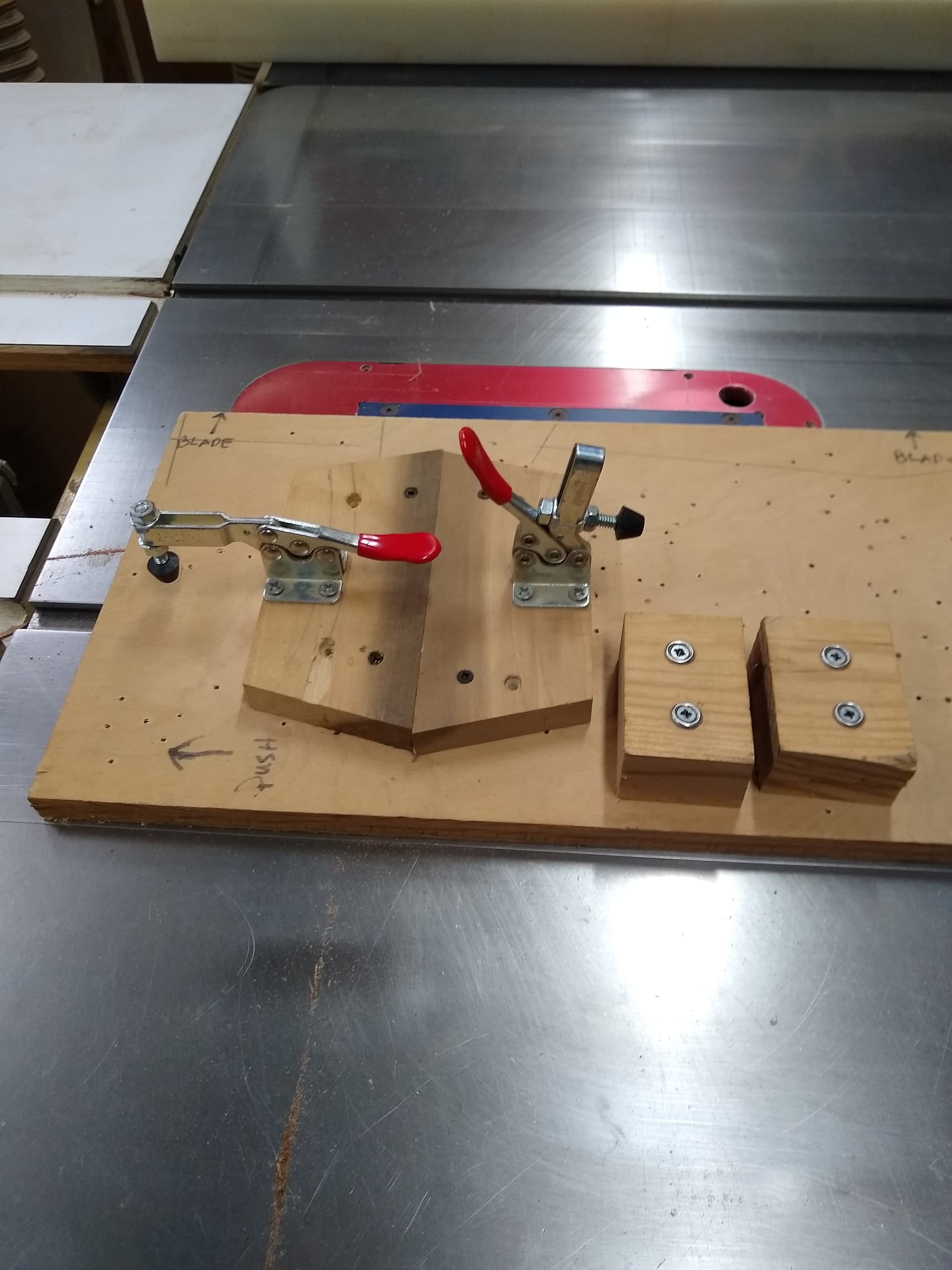 I just move the clamps around with the blocks to secure the blanks.