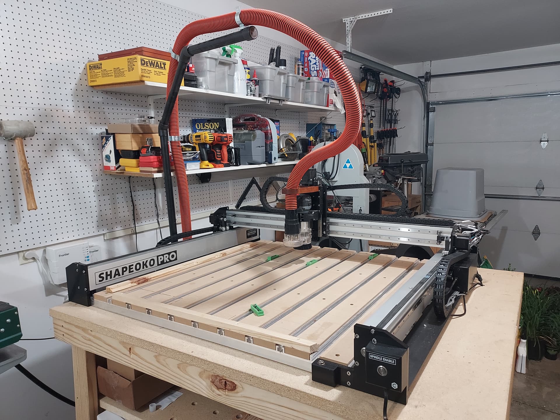 I ran electrical conduit before the slab was poured so no cords in the way. Next time I will run the dust collection that way as well.