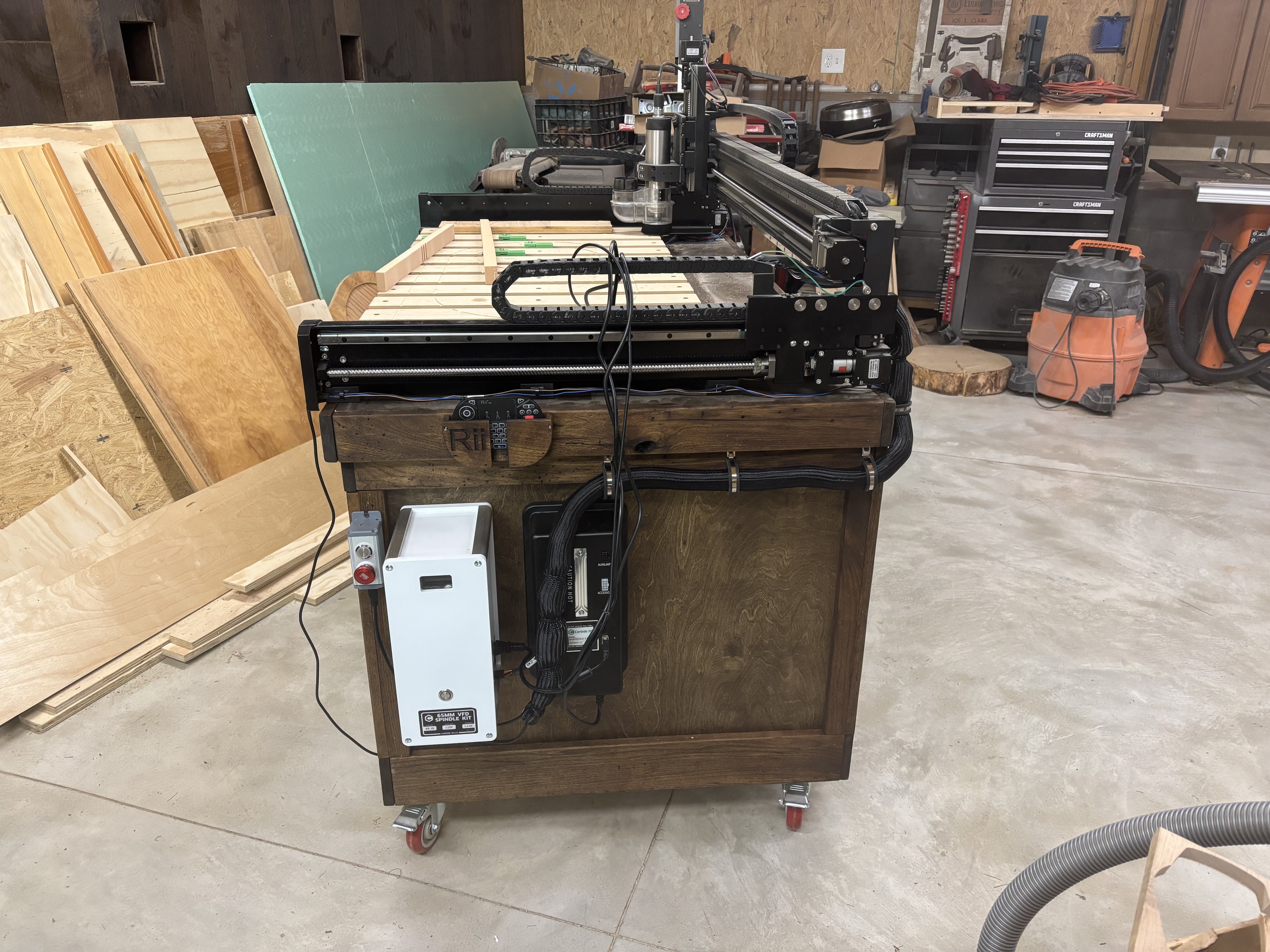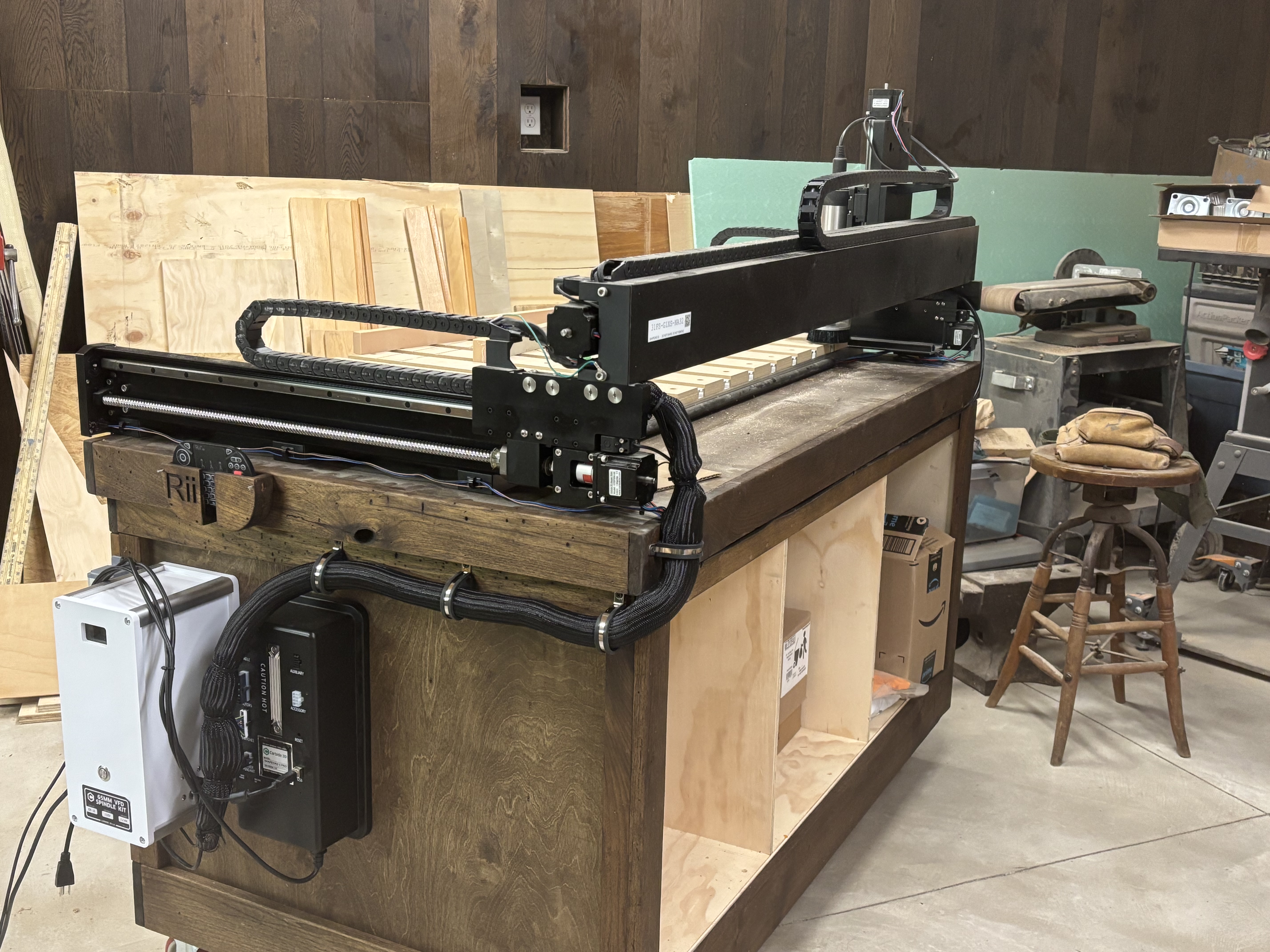 Along that one wall is a sander, planner, band saw, table saw, drill press, laser, cnc, jointer, tenon press plus a few other power tool items on flip carts I don’t remember at this time.