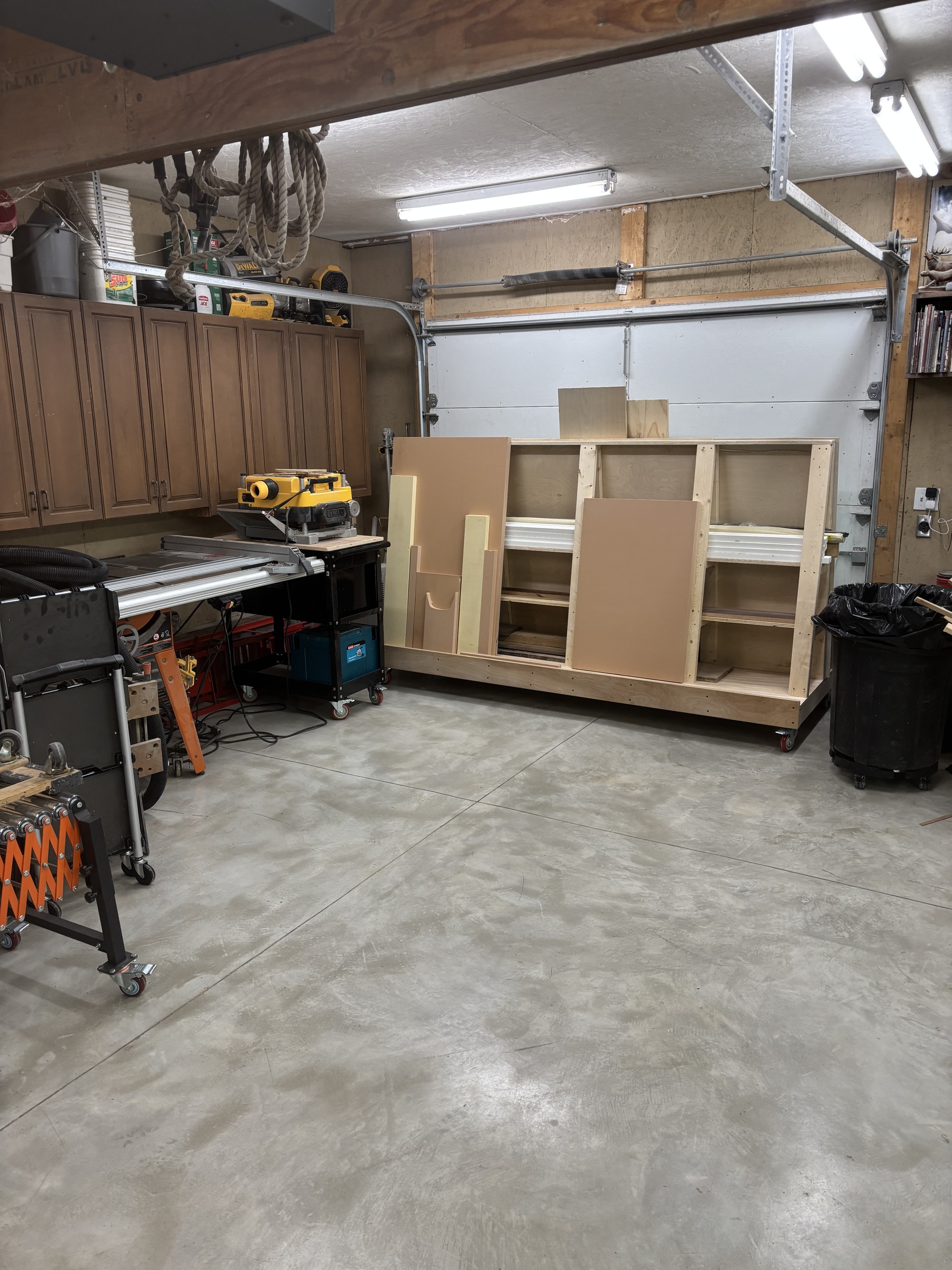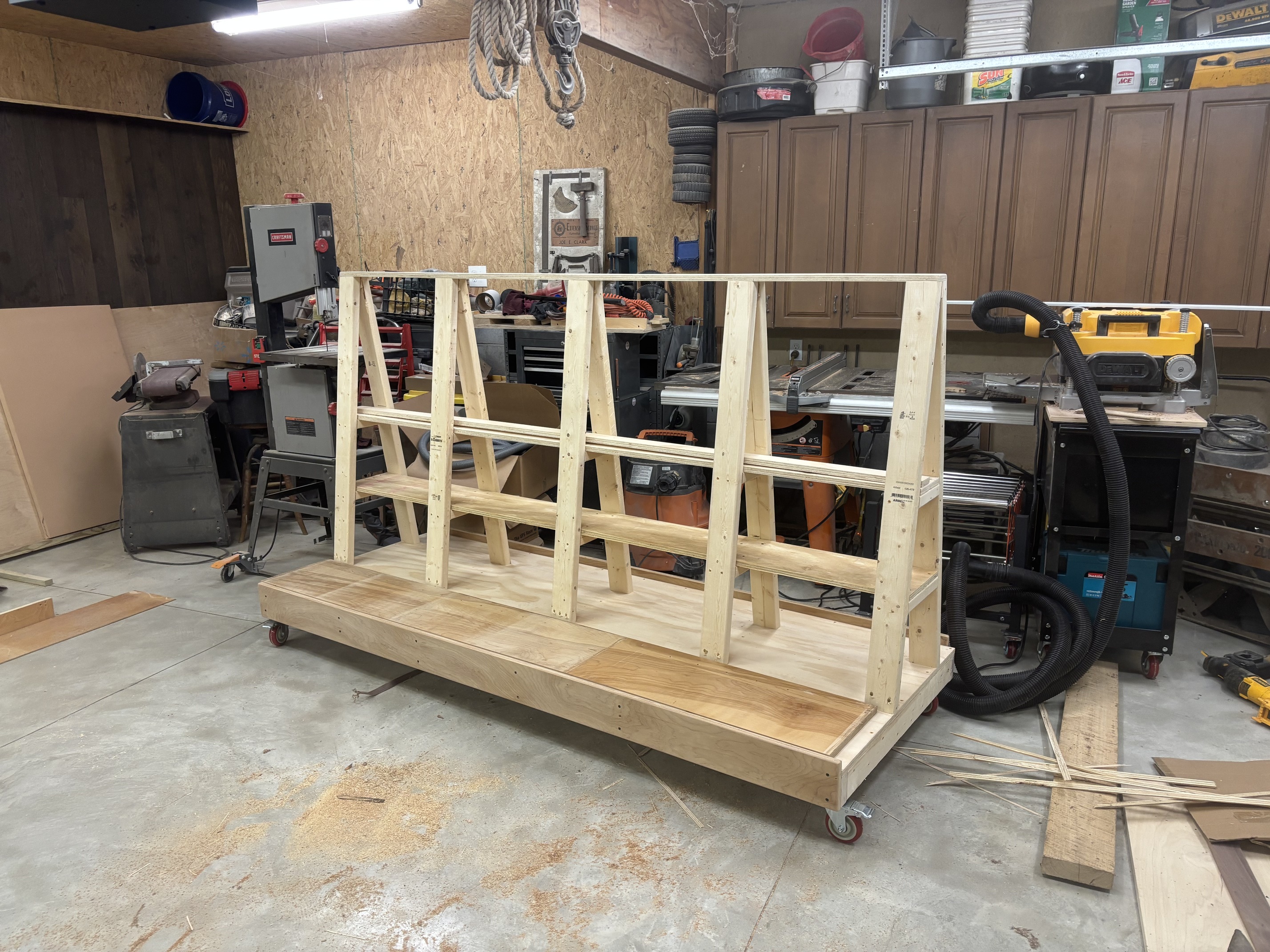 Finally pulled the trigger on a rolling sheet material cart. Just got sick of have plywood and HDU stacked against one whole wall and up against my garage door. This will consolidate it all and I can roll it wherever I want to quickly get it out of the way as needed. Already have future upgrades to this in the back of my mind. Note: I made one side narrow to hold up to three full sheets of 1 1/2" HDU and the other side is for everything else. AND I’ll be able to put long boards in the center.