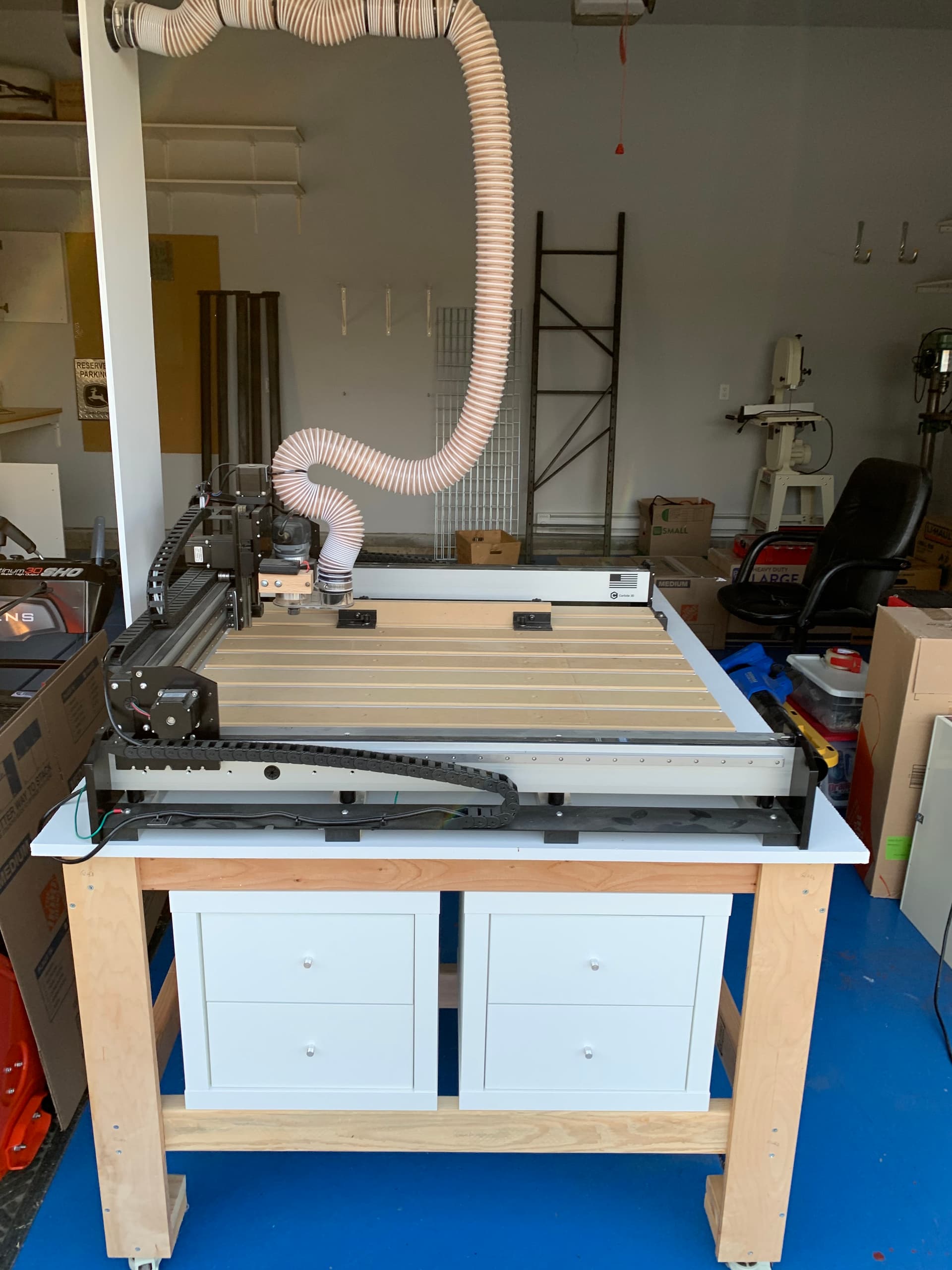 I built a custom table for it with 4 drawers and a boom to handle dust collection. I will sell it with or without the table.