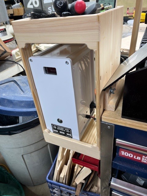 The NEMA power cord comes into the right side of the spindle controller. (This is the thicker cord to the back.) this supplies the mains power to the vfd controller inside the spindle controller box. Since I have the 65 mm spindle it’s the 110V from the wall (I think the 80 mm is 220V, but I am not sure), This is the one that powers the box that has the number display.