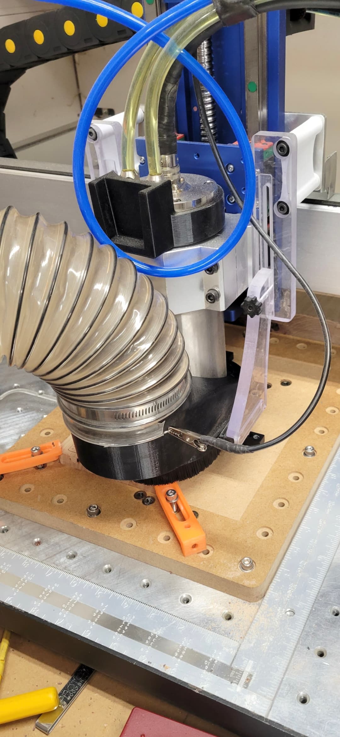 I bought an anti-static dust hose which really didn’t help. The disconnect issue went away when I bought the C3D 65mm spindle. That makes me think the disconnections were mostly due to the router noise…