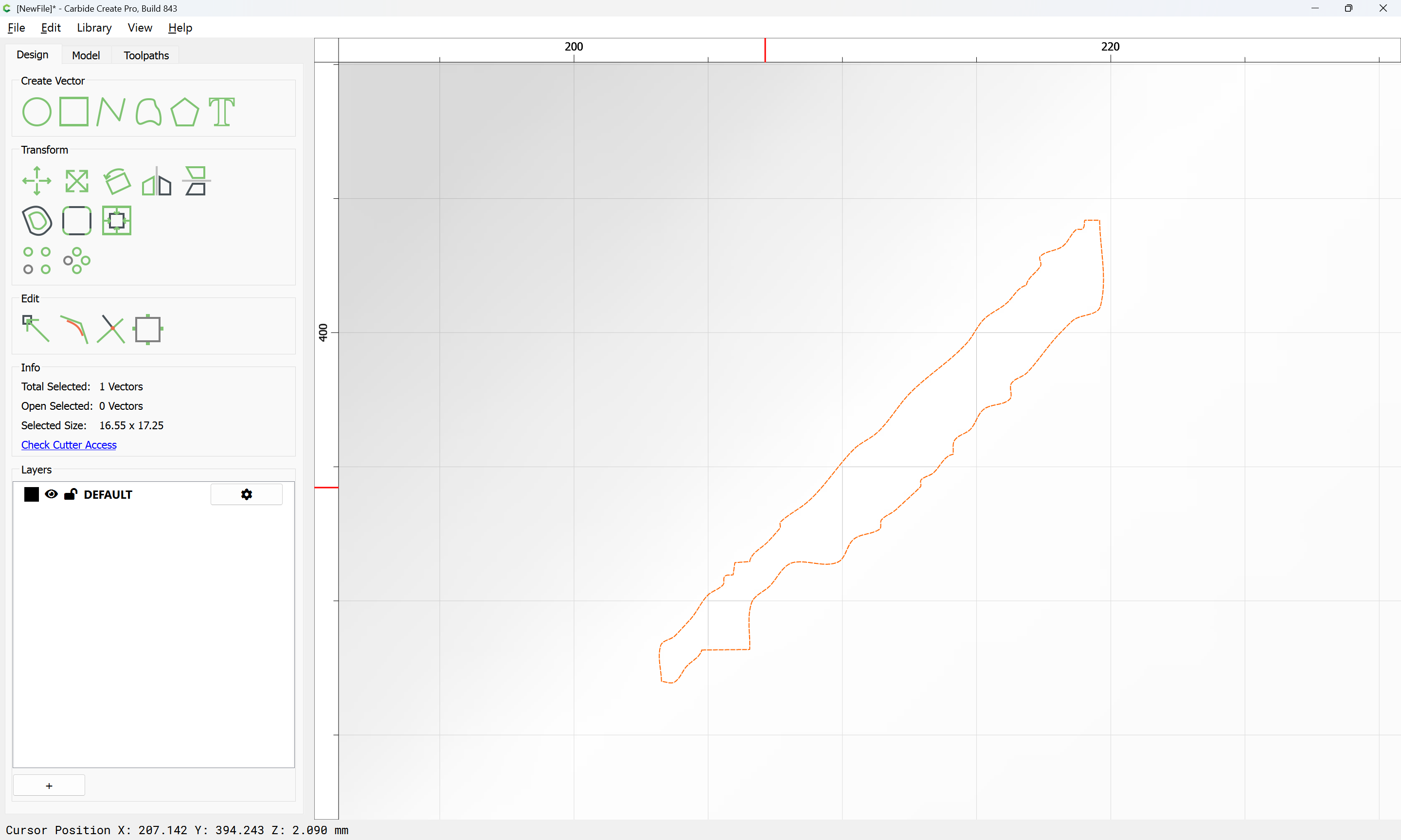It looks as if this region should be just ~2mm thick, so if we offset it a bit: