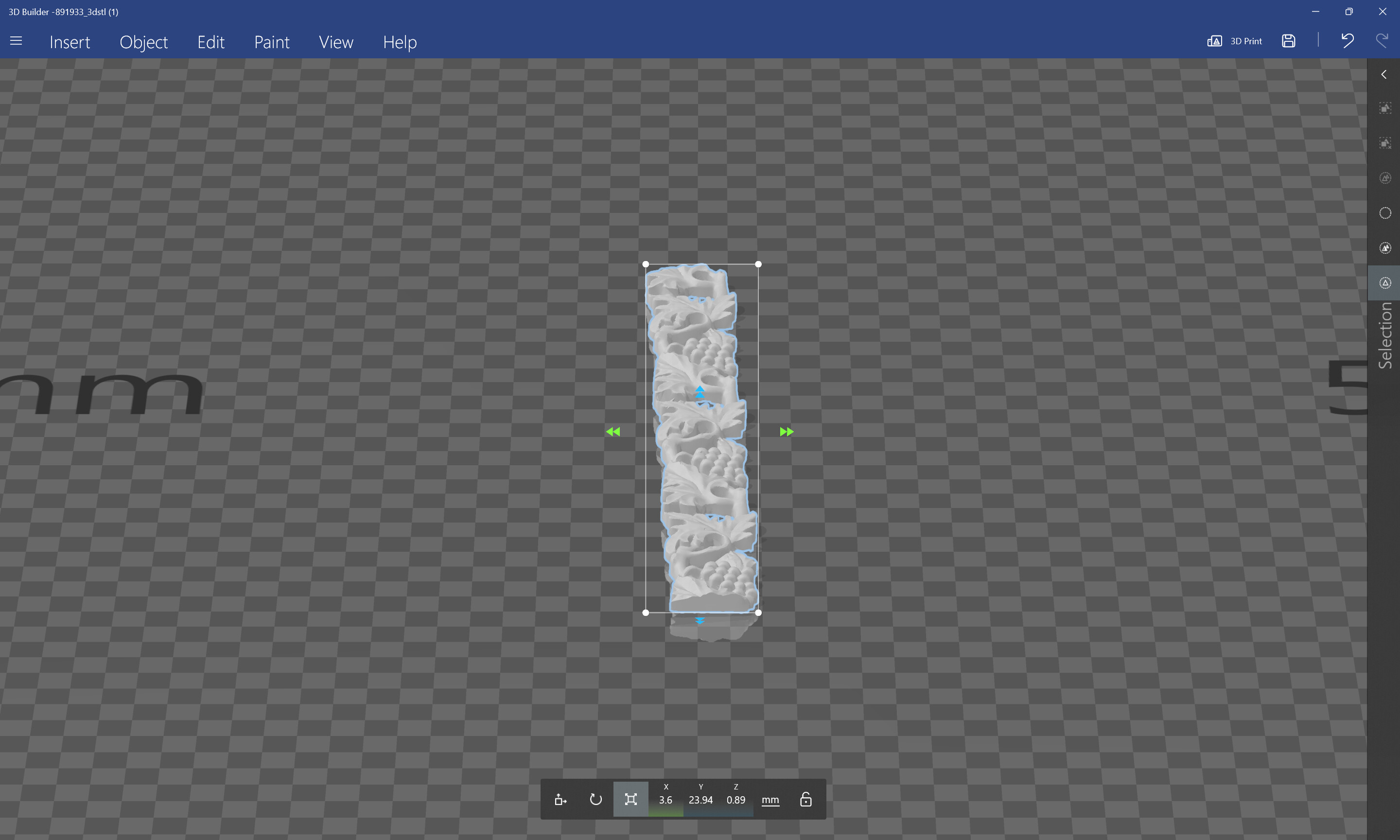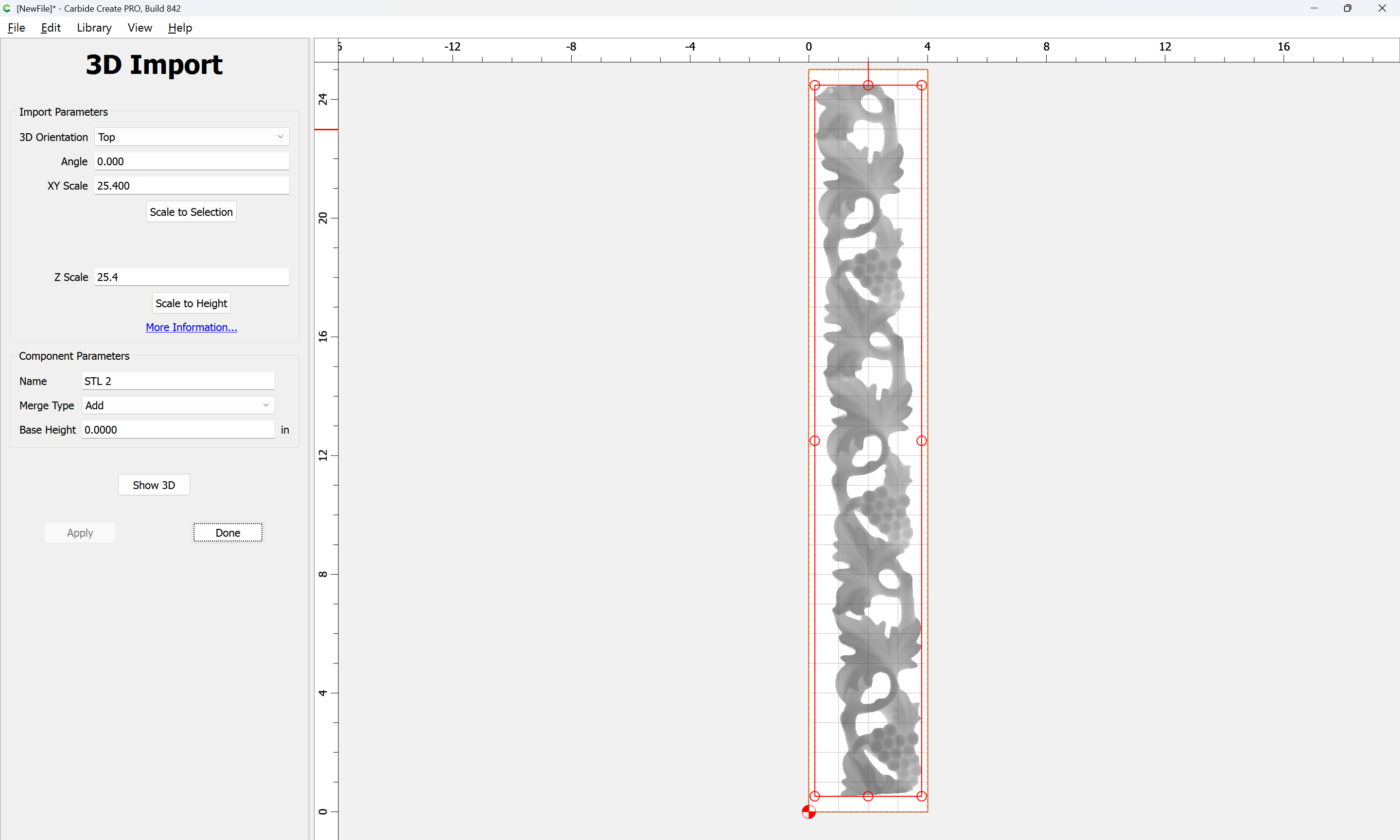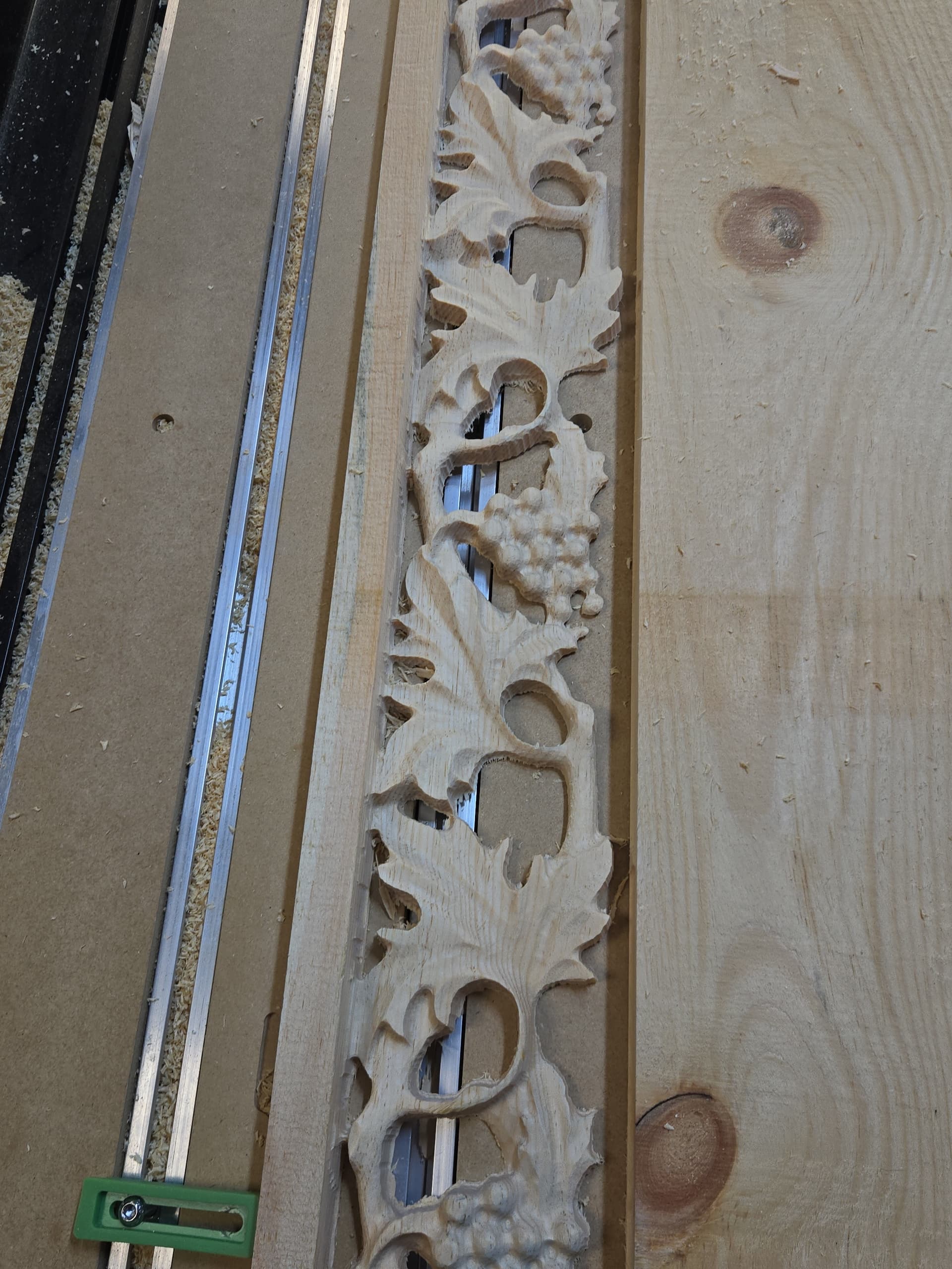 I’m trying to make a gingerbread molding using a stl from osbornewood /pierced-grape-moulding re sizing it to 6" wide 8’ long and adding a top border to attach it to a building: