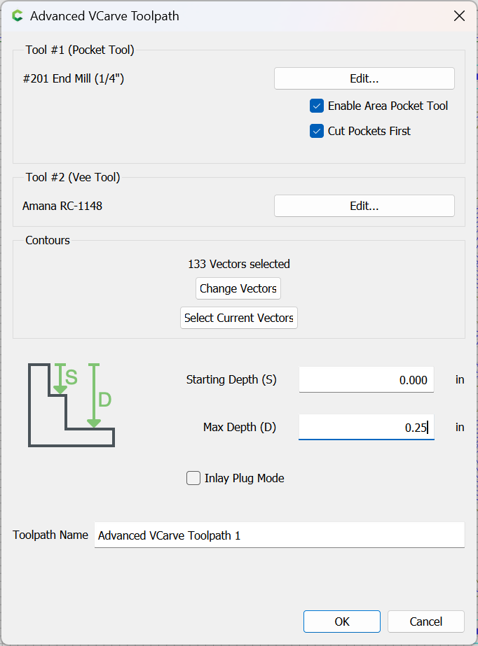 Is V-Carve the way to go here if I want to cut out all of the material in the contours? From what I understand that’s used for pocketing out larger areas more quickly but I’m cutting the sections out completely