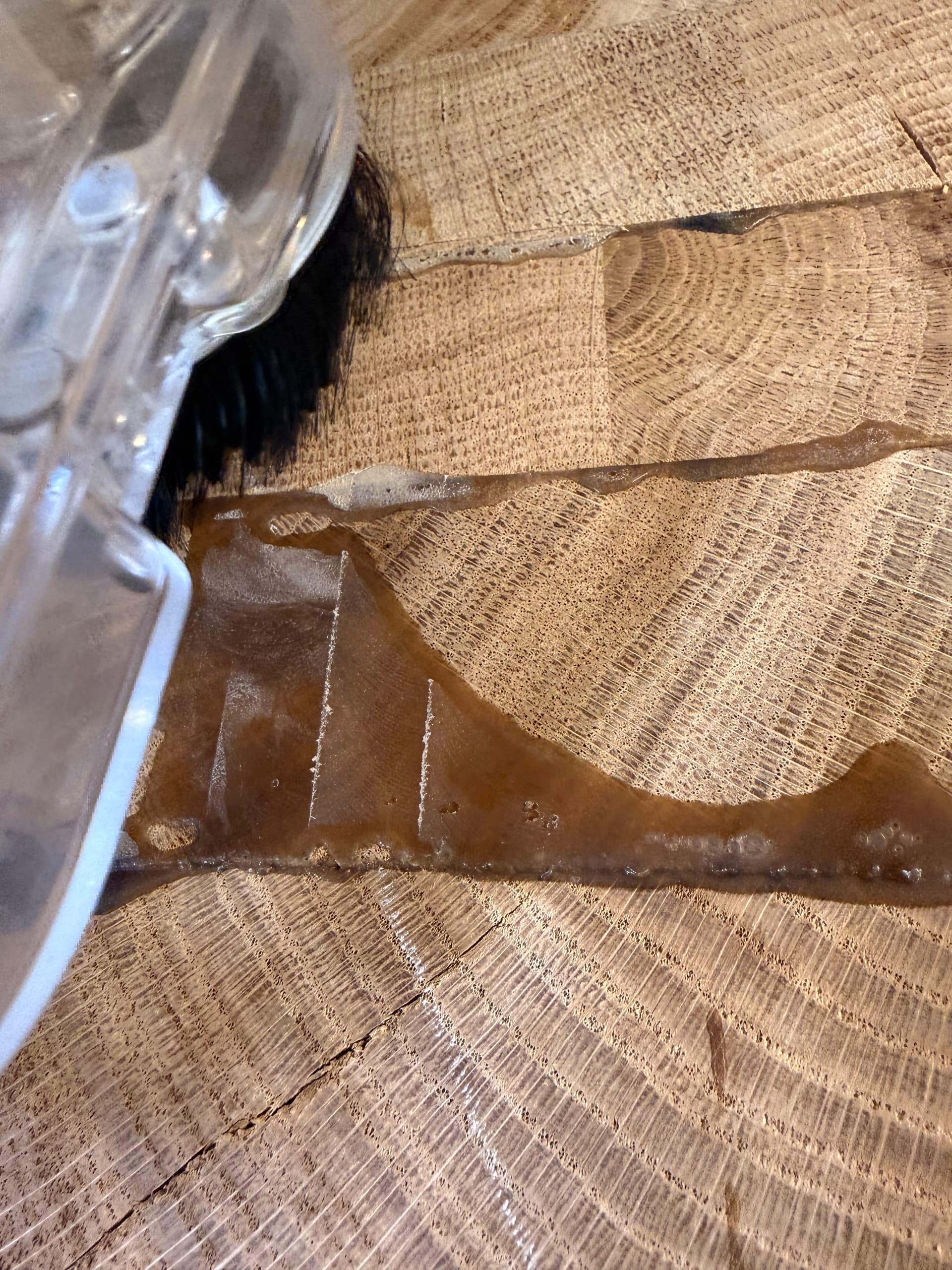 Here is the issue, shown clearer on the glue. Also I notice the trimmer is making a strained noise when moving right and not left. The surfacing but is very slightly “leaning back” when going right.