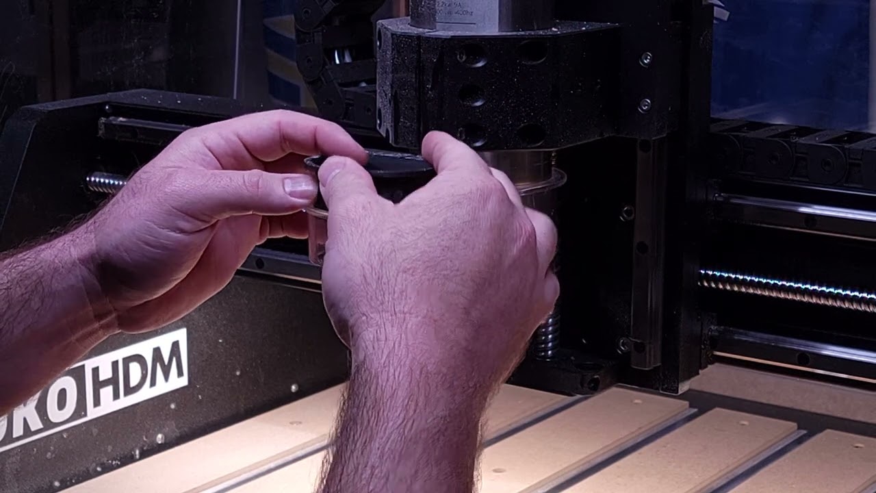 Since the standard mounts that come with the Jtech laser aren’t compatible with the HDM I’m working on a simple universal mount for the sweepy. The is iteration 1. Take the sweepy 2.0, remove the bottom magnetic cover and hose adapter, and install the sweepy upside down on the spindle. The mount slides into the vacuum port and the laser module attaches magnetically. There is an indicator mark baked into the laser mount to assist with repeatability of installing.