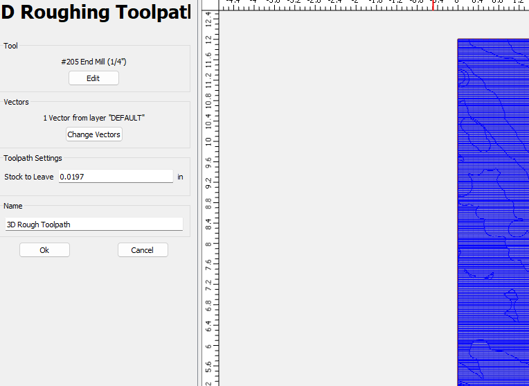 I added two toolpaths, rough 3D pass and 3D Finish pass using the default selection.