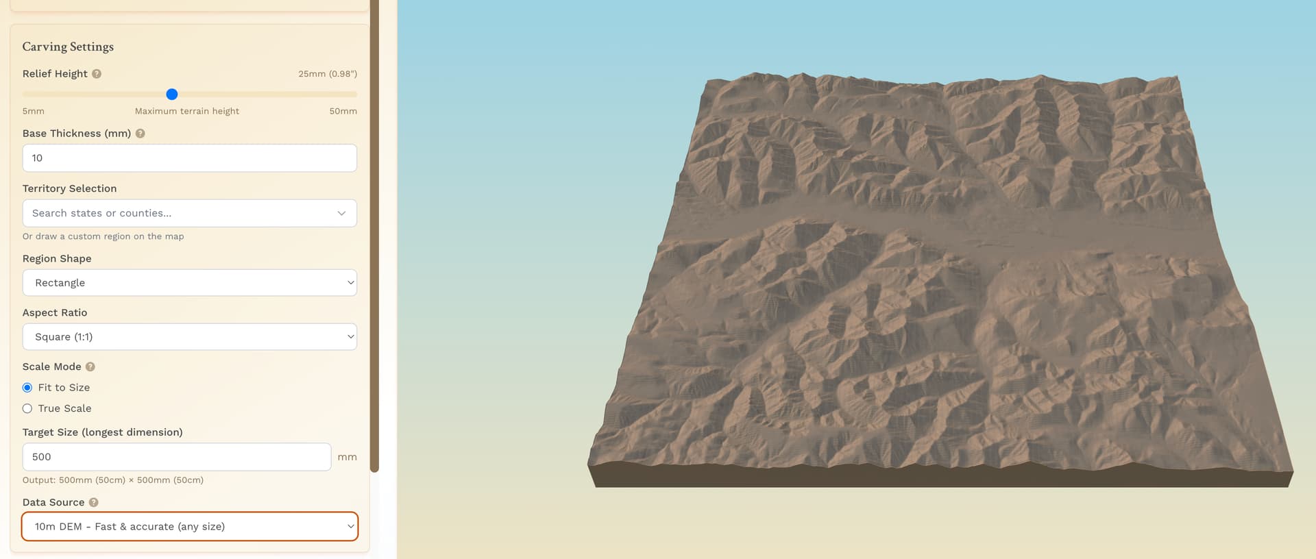 Maybe you are saying pick a larger area and then just cut to the area I want? The only reason I am trying to get the detail is because it is a memory for a friend for backcountry hiking. The more I select, the less apparent it is for them.