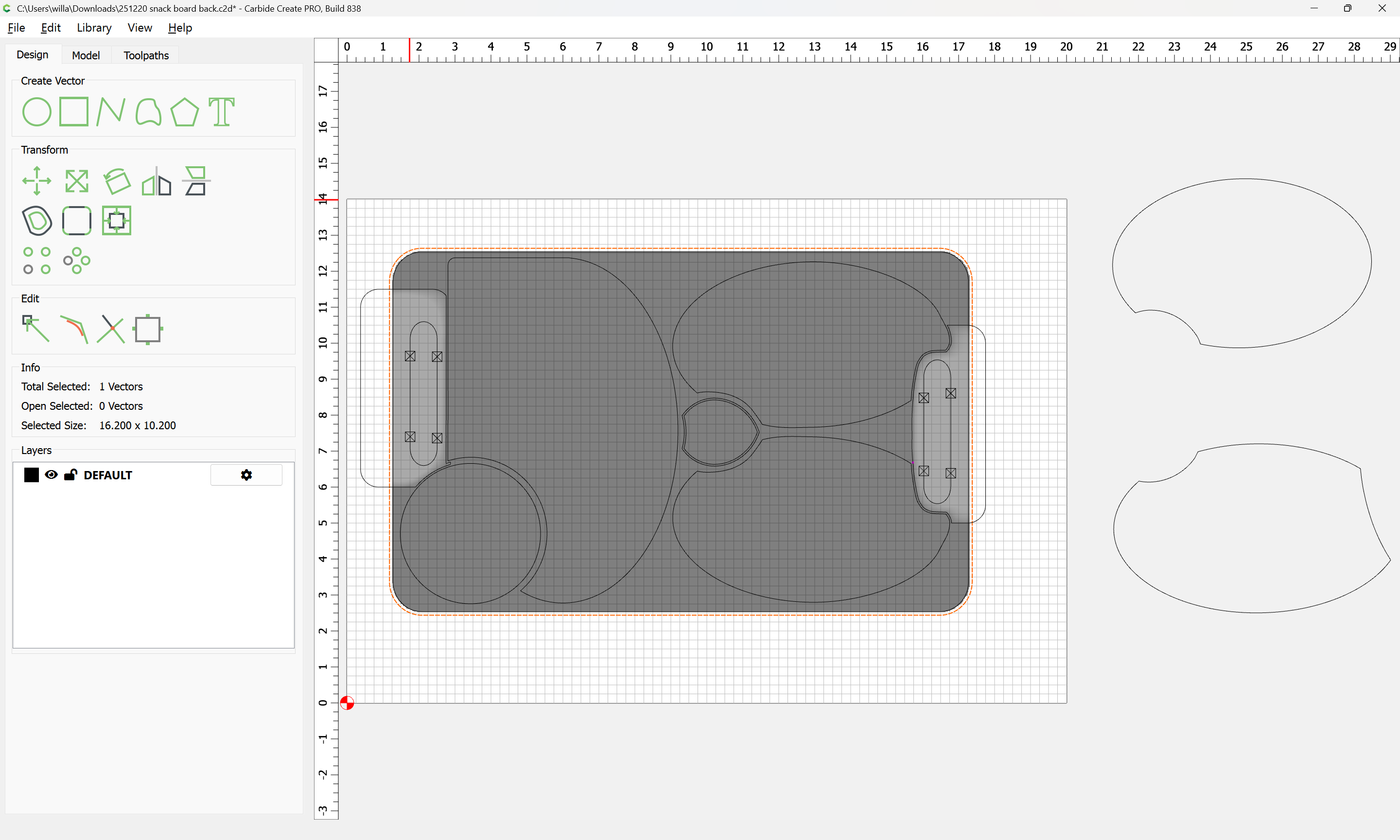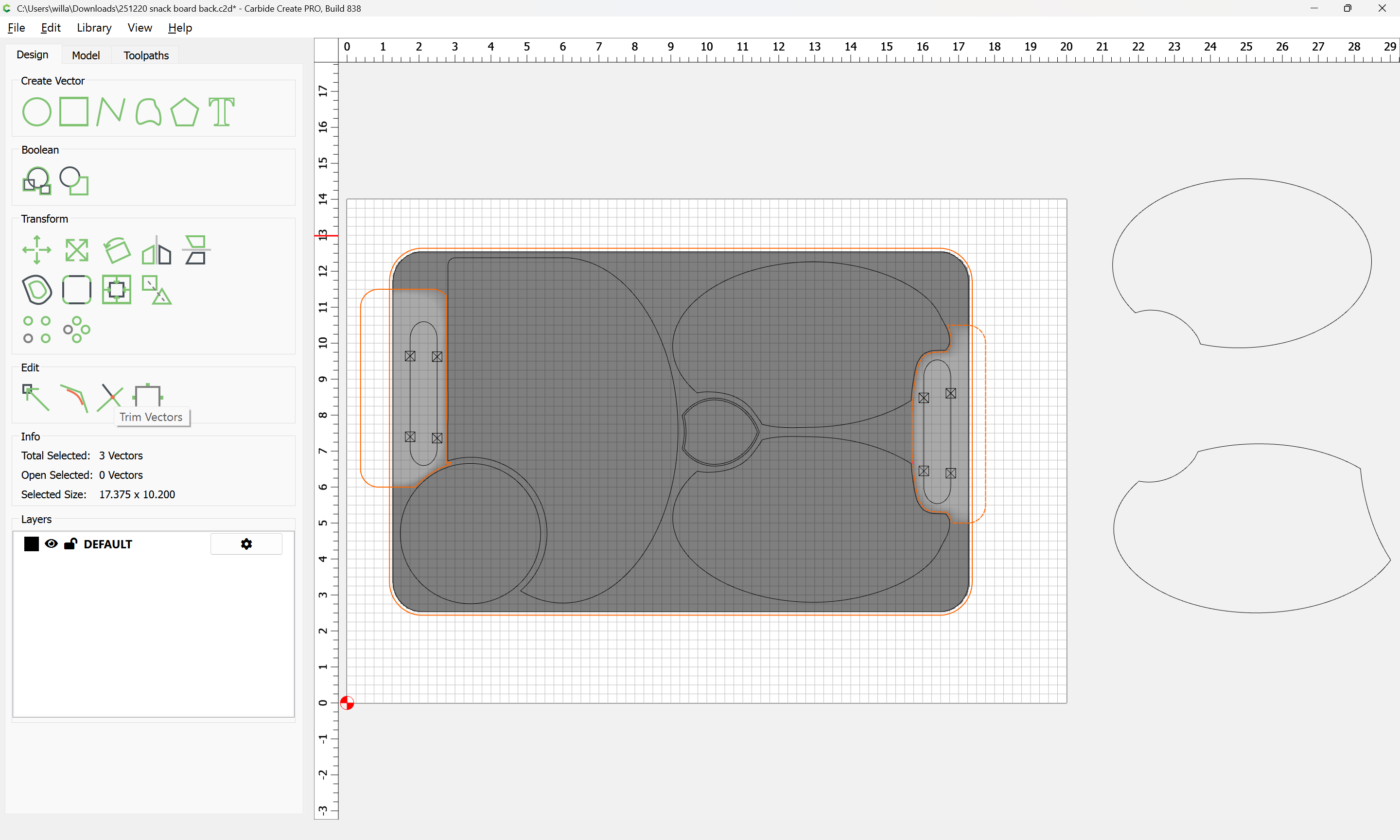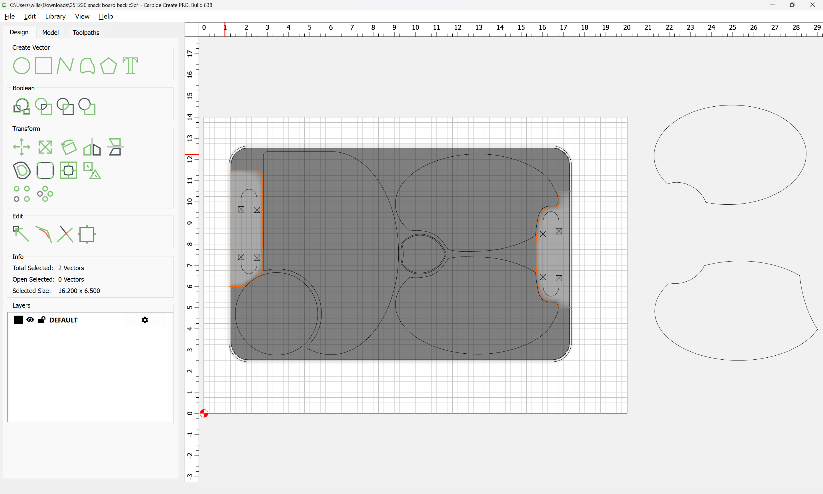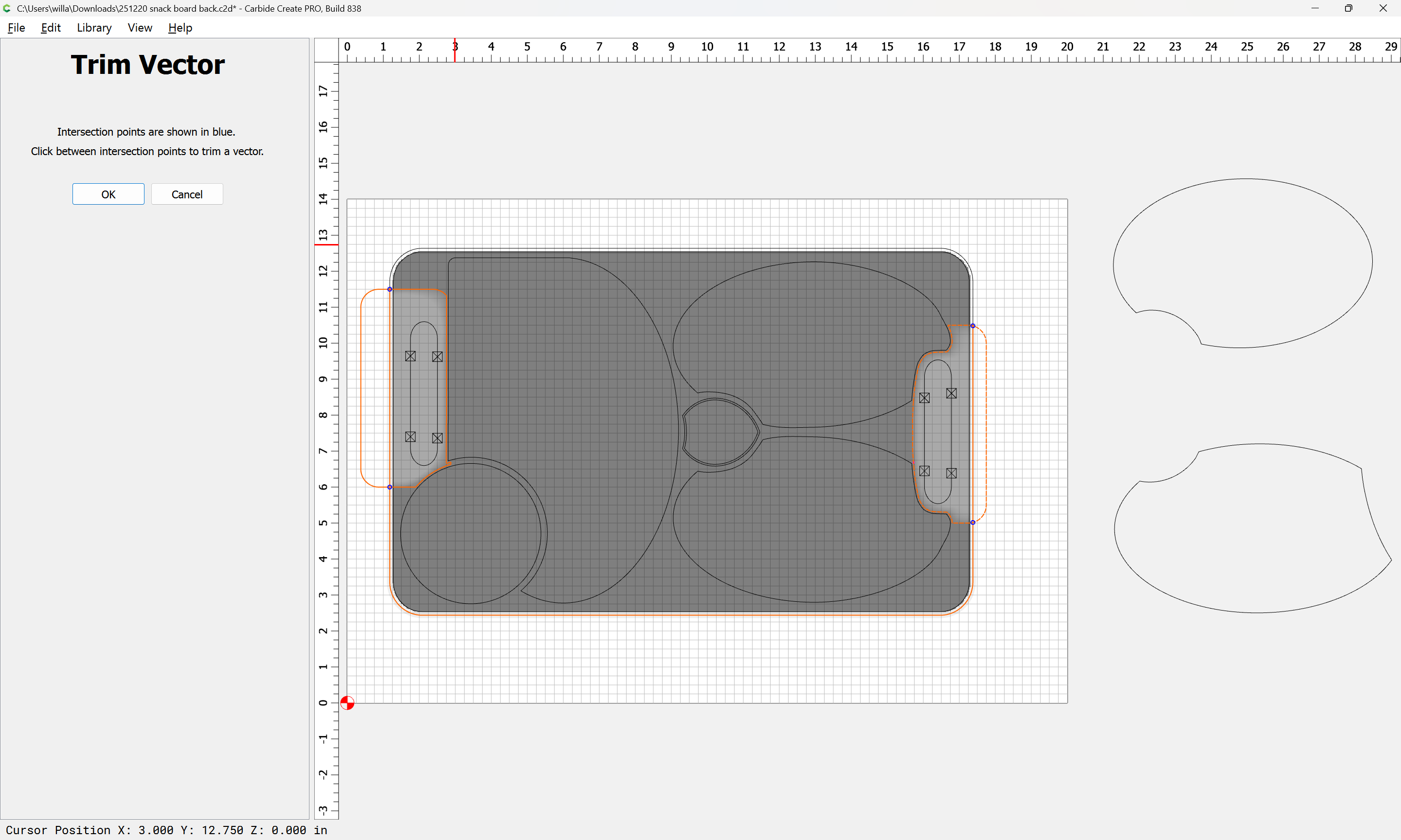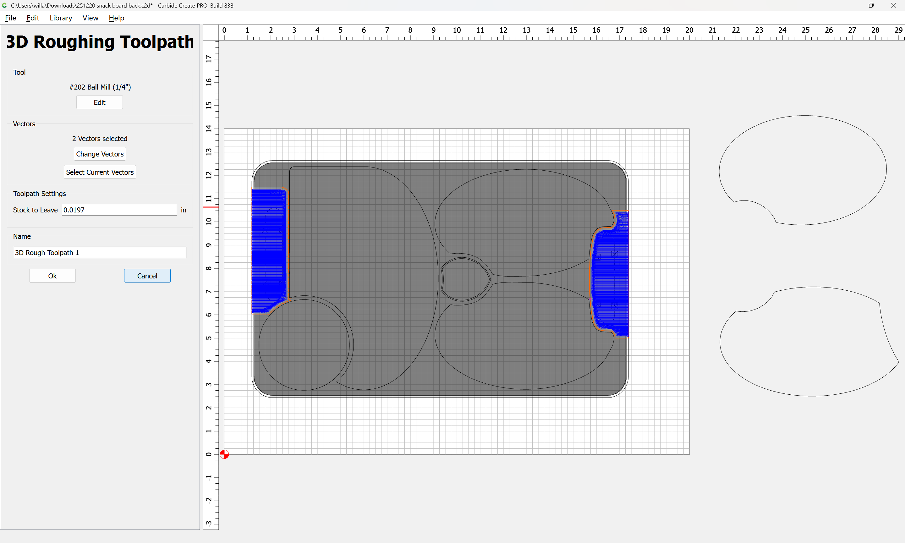 i try to make a snack board with 3-D cutting on my Shapeoko 5 Pro, i figure out the top part, and try to do the bottom part.