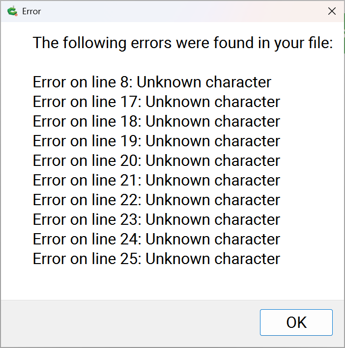 and saved the toolpaths to the same file, since the G-Code export is not free anymore now. Then I installed the latest Carbide Motion, build 649, and it doesn’t load the file, says a lot of “unknown character” messages. How to fix this?
