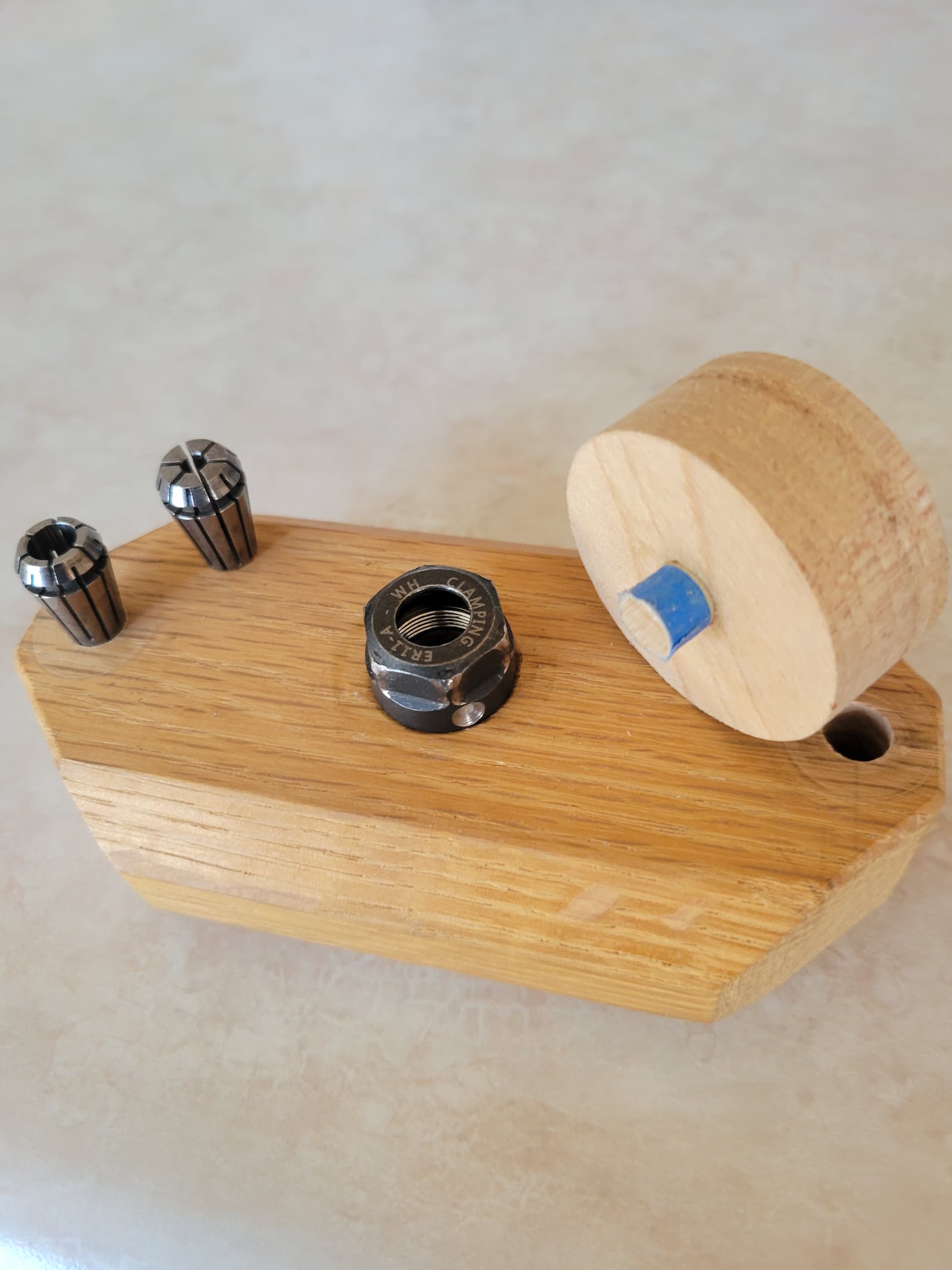 I am upgrading to a spindle for my Shapeoko 3XL. In the process I am being introduced to ER collets. These have a split ring in the bottom of the nut which adds a challenge when changing from 1/8" to 1/4" collets. Prior to this the collets for my Makita trim router fell out.