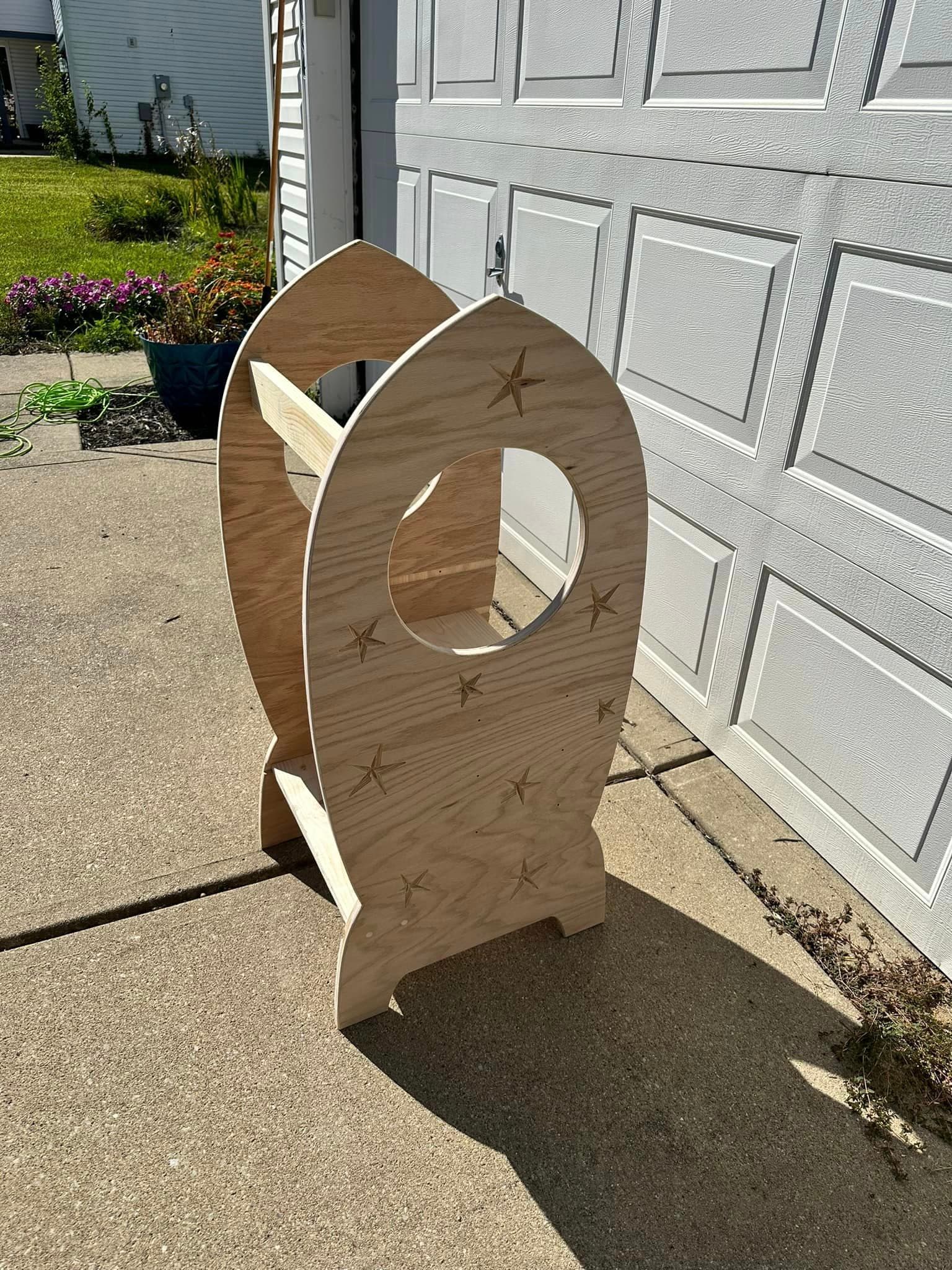 Today I cut and assembled my first large scale project on my S5P! A kitchen helper step stool for my little ones. Decided to let my 4x4’ stretch it’s leg on a double sided project. Wanted to challenge myself. Eigenbot posted similar plans on cutrocket but with tiling, and since I have a machine large enough to cut it all out in one cut, I decided to use inspiration from their design to model it to my liking and give it a shot. I also wanted to vcarve the stars so we could paint them.