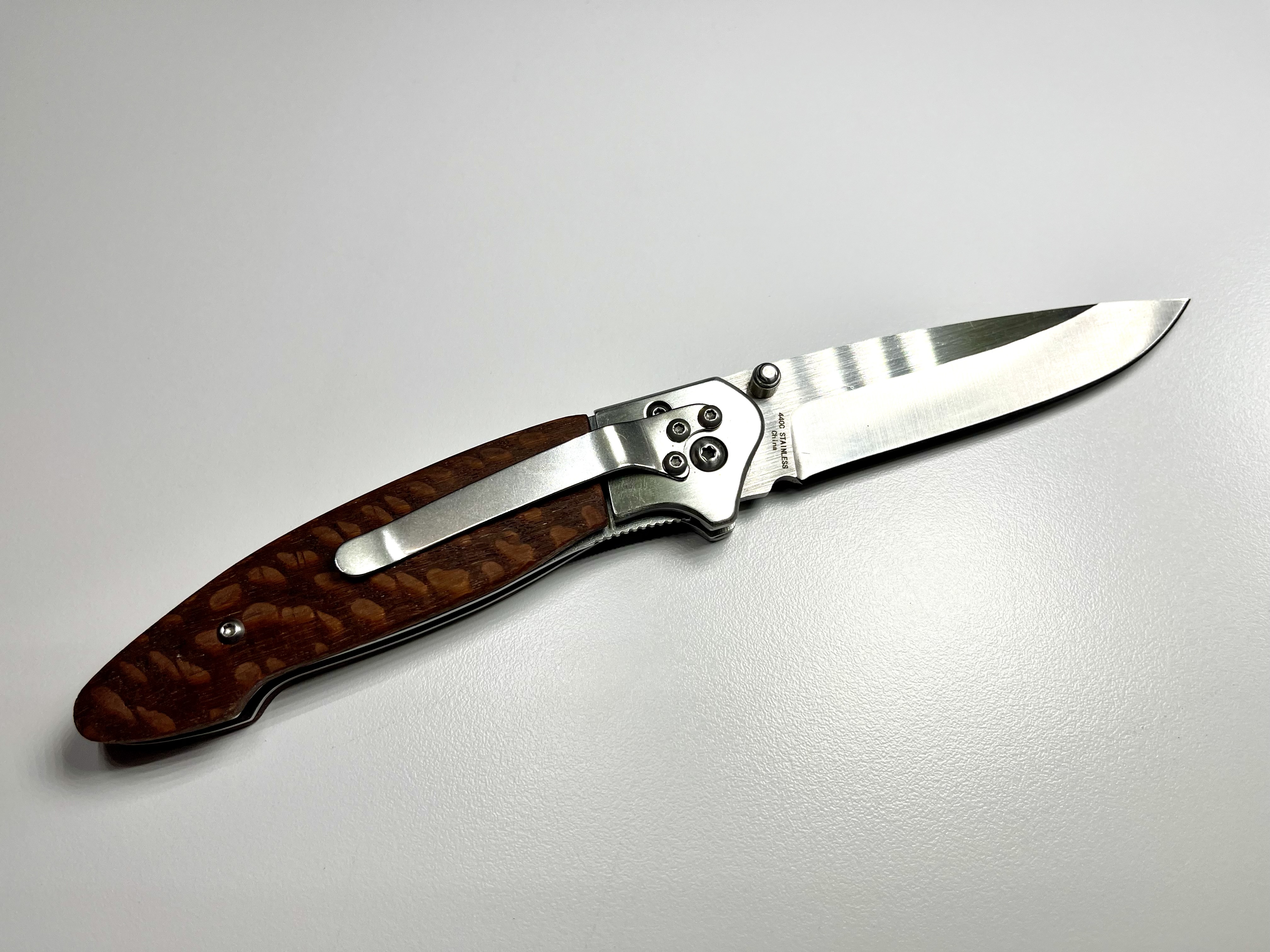 Very nice knife scales. I bought a knife from Woodcraft and it had a very faint piece of paper that was not to scale. I tried to scan it with no a lot of success. The knife is still in my stock of things to do. I was very disappointed in the knife. My grandson likes the knives with the pin like on yours. I hate those type of knives and have a Spyderco for about 30 years that has a large hole to open the knife with.