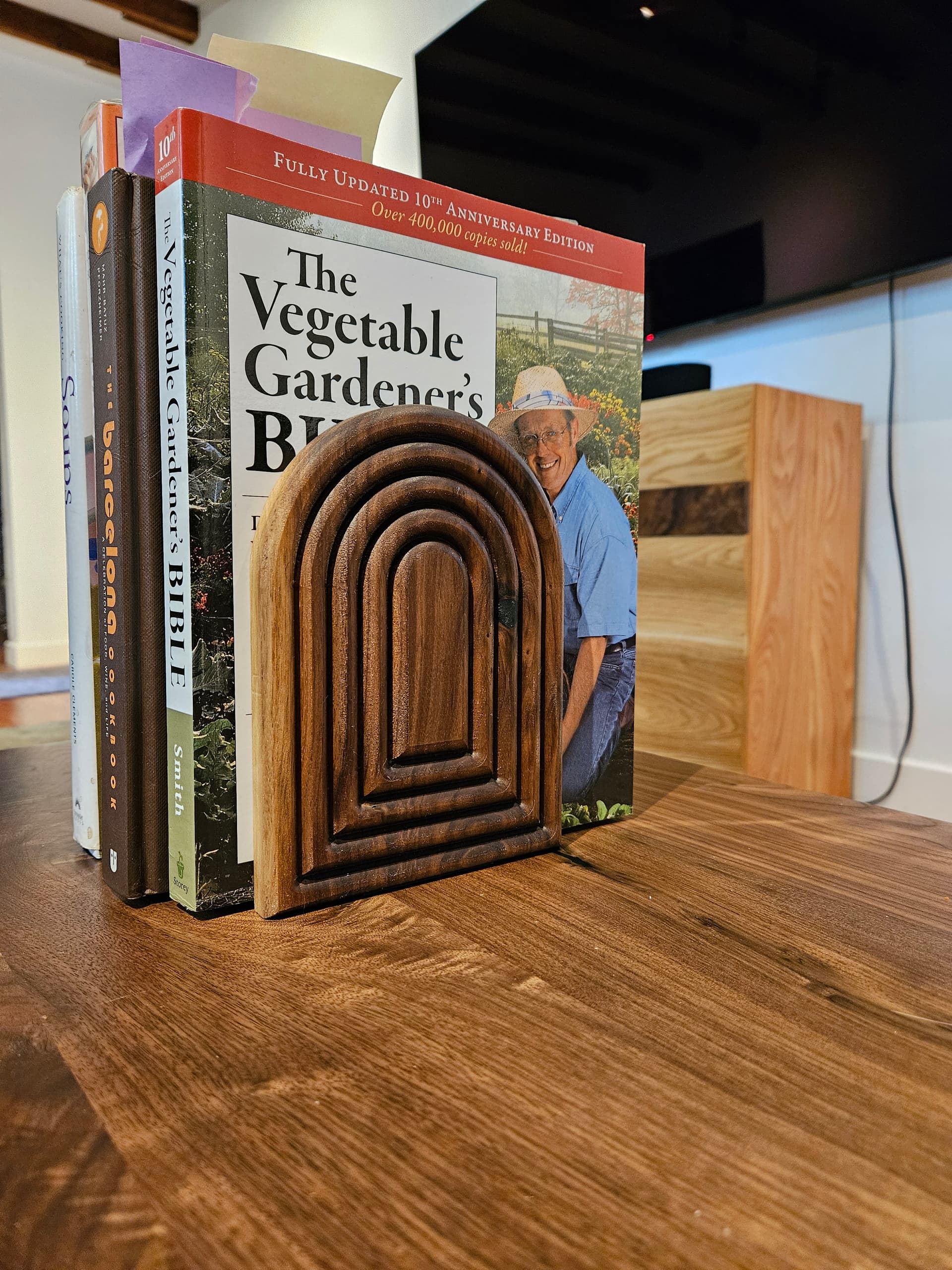 Very nice book holder. Maybe in our modern age you should have made a phone holder to hold up a phone or tablet. Books are becoming obsolete. I get a lot of woodworking magazines and still prefer to read the physical magazine as opposed to the digital editions but in our digital age books are becoming more and more rate. So hang on to your Joy of Cooking, it may someday be sold at a rare book seller for millions of dollars.