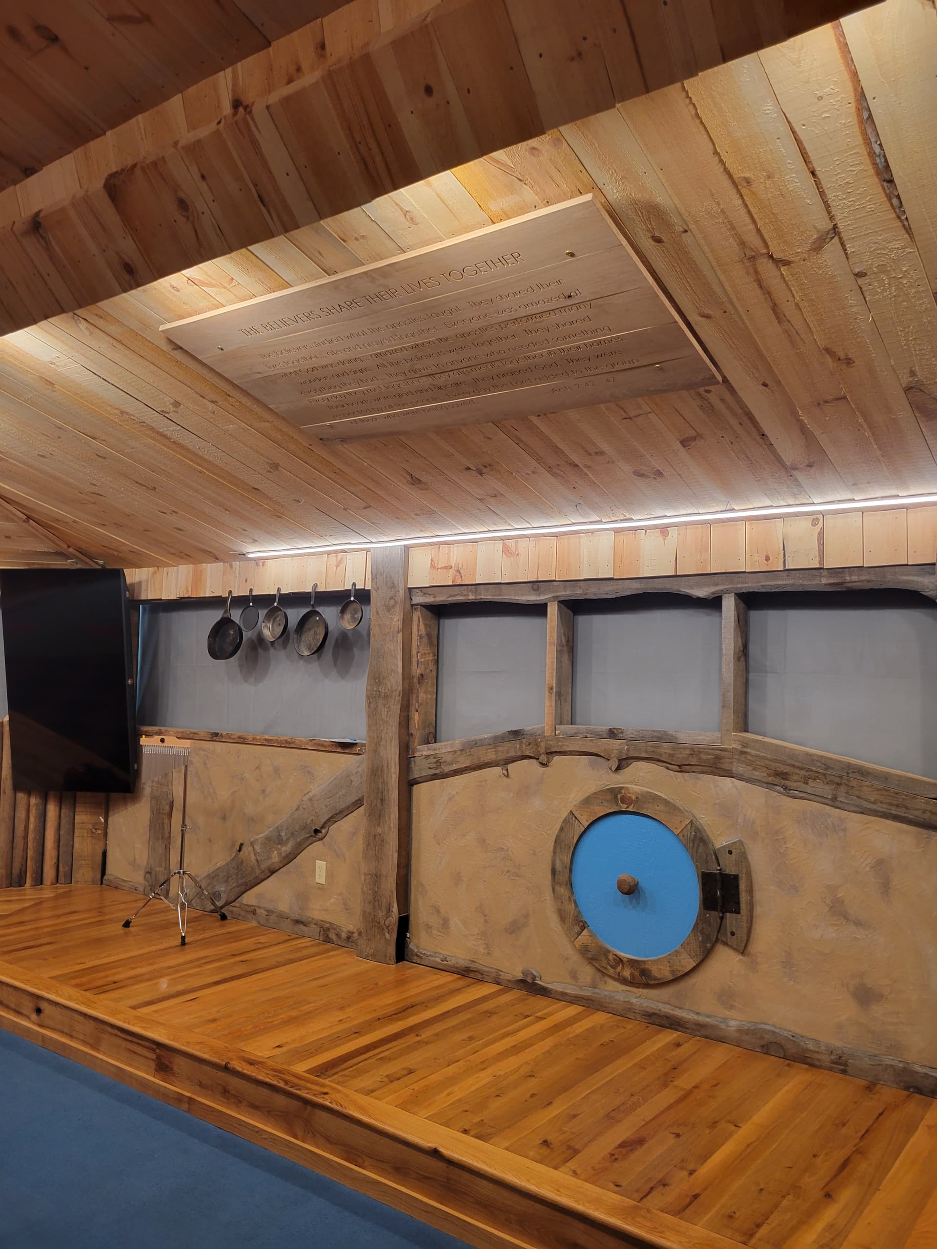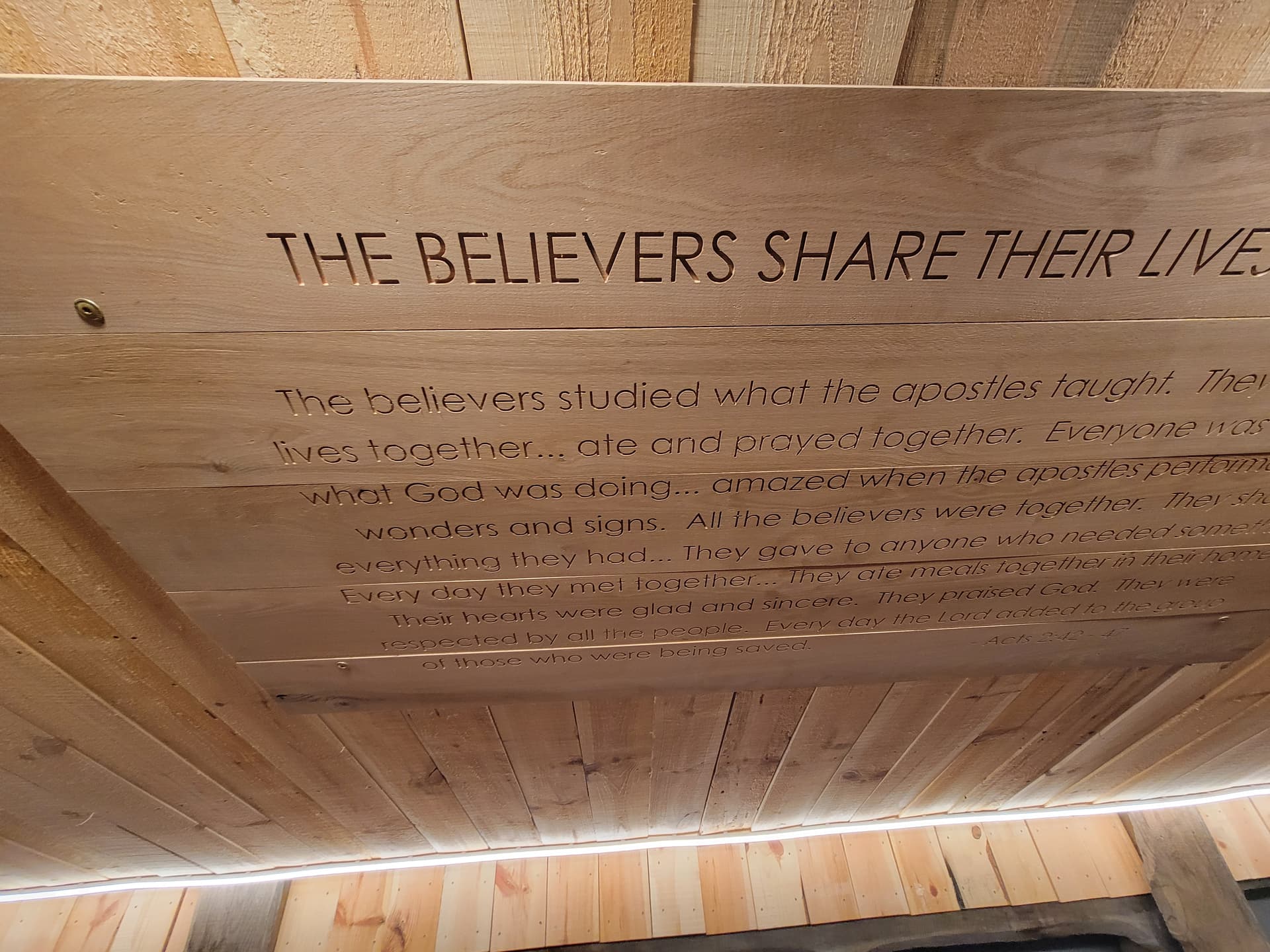 Big verse sign. We decided last second to leave it unpainted and rely on the nearby stage lights to cast shadows into the letters.