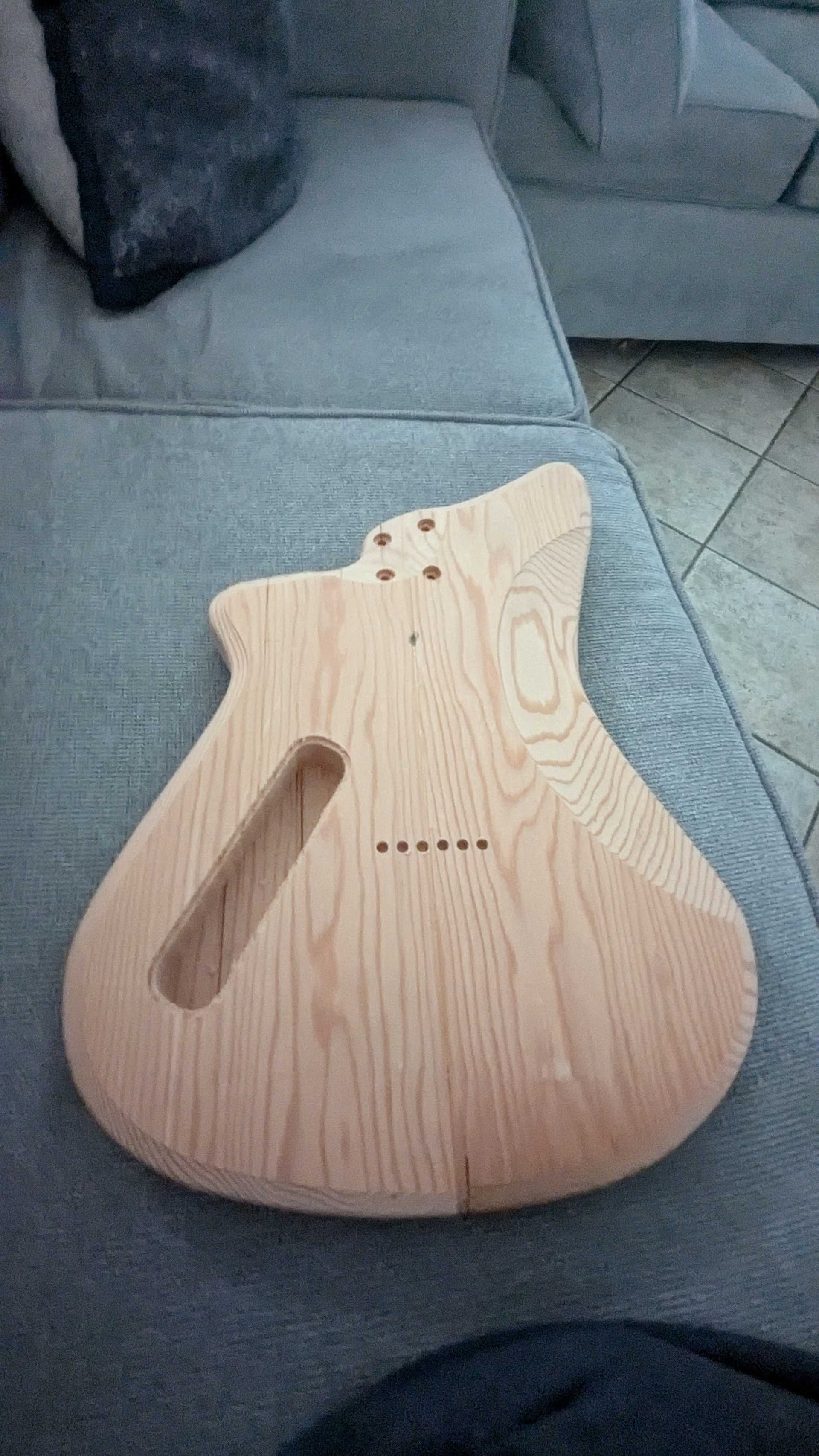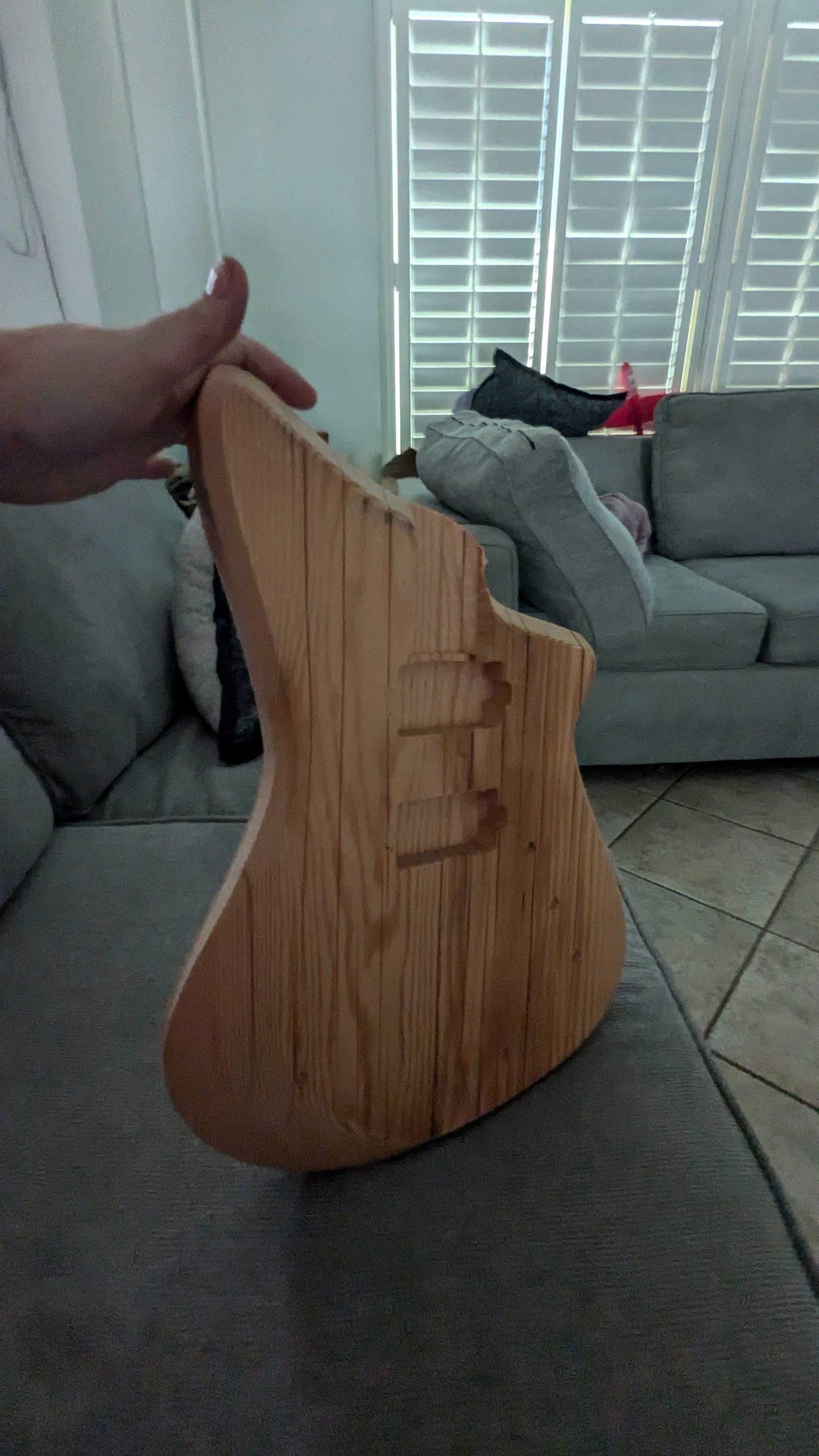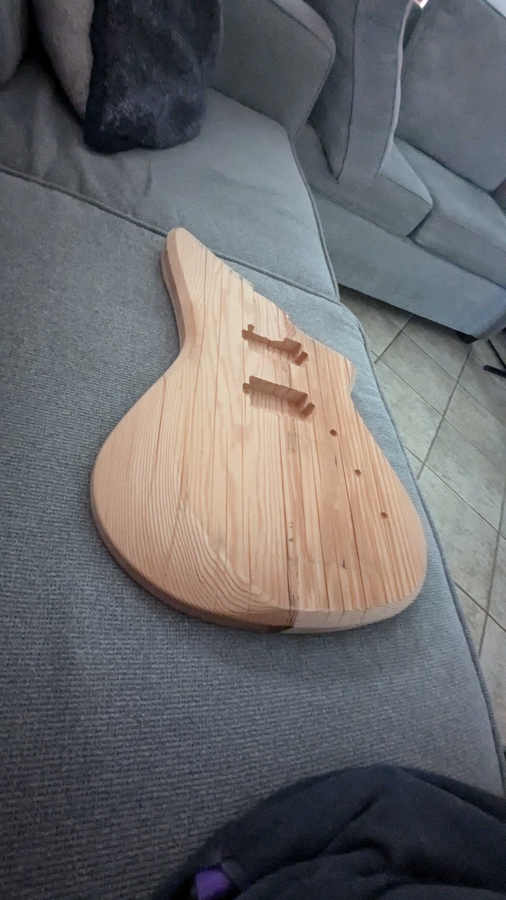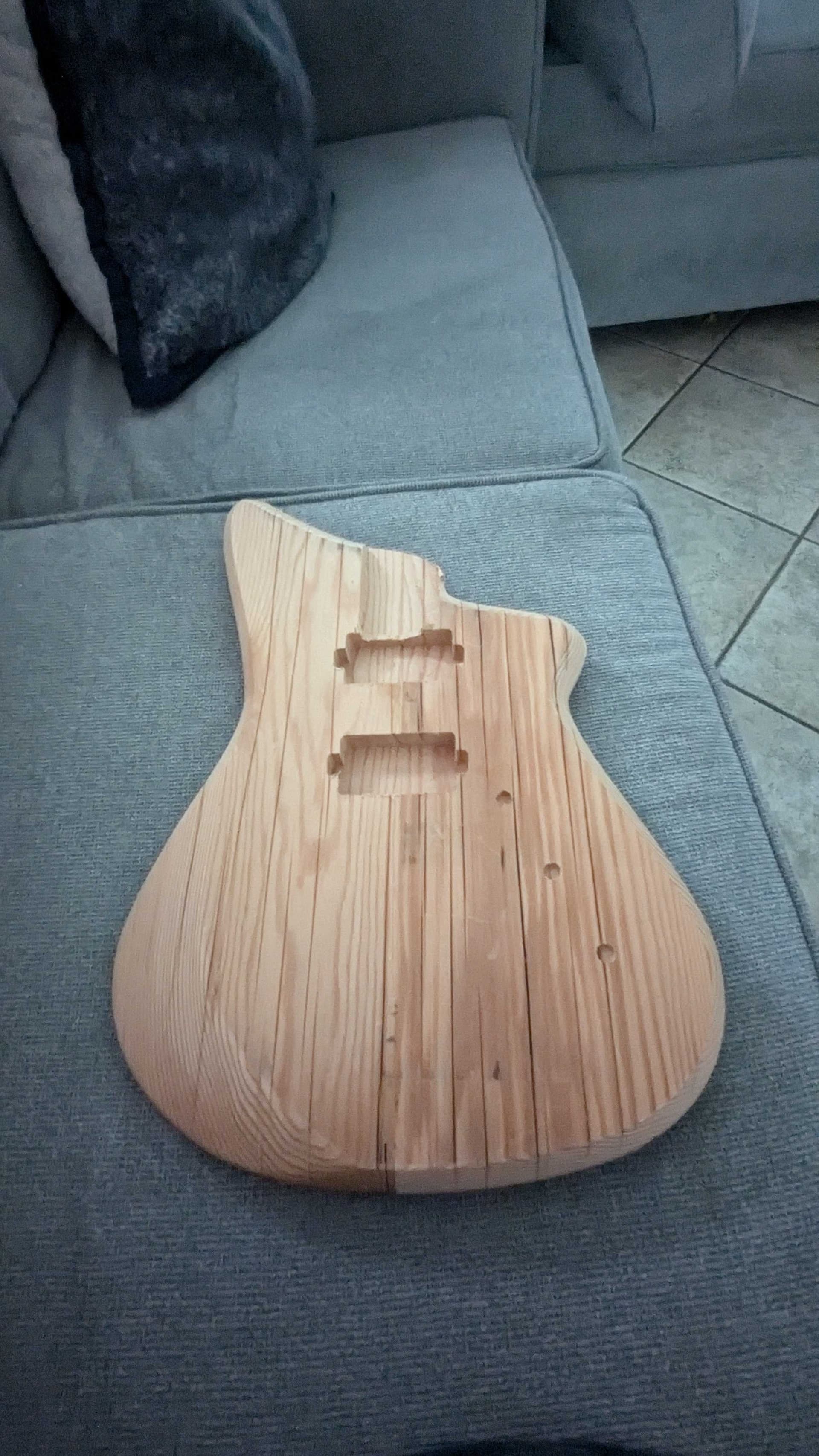 First guitar body to come off the machine. First start-to-finish 3d carving project using Fusion360 + Gsender instead of CC/CM. It has a few rough edges, CAM needs some tweaks It’s just a scrap body blank, but I’m making good progress! I had a few botched attempts with foam and other scrap blanks, but this one is serviceable.