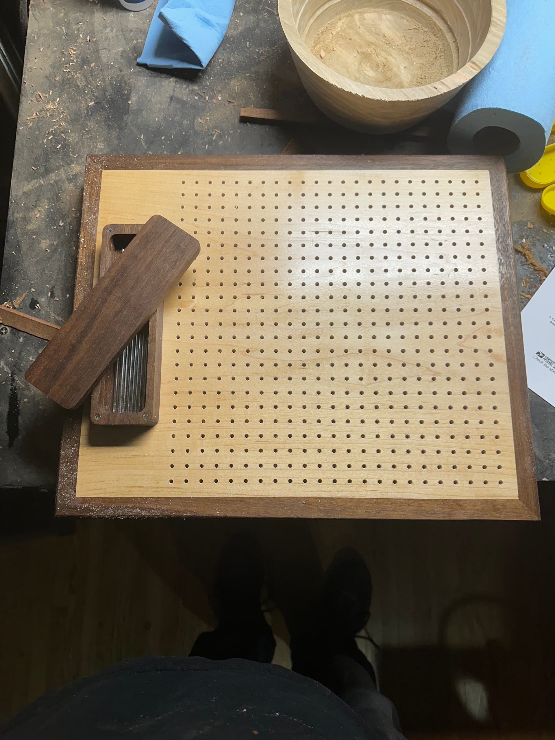 @gdon_2003, I have made two of these as gifts. The project was created in in VCarve Pro and machined on a Shapeoko 5 Pro 4x4 w/ C3D VFD/spindle. I placed one 1/8" hole and then created a 23 x 23 array.