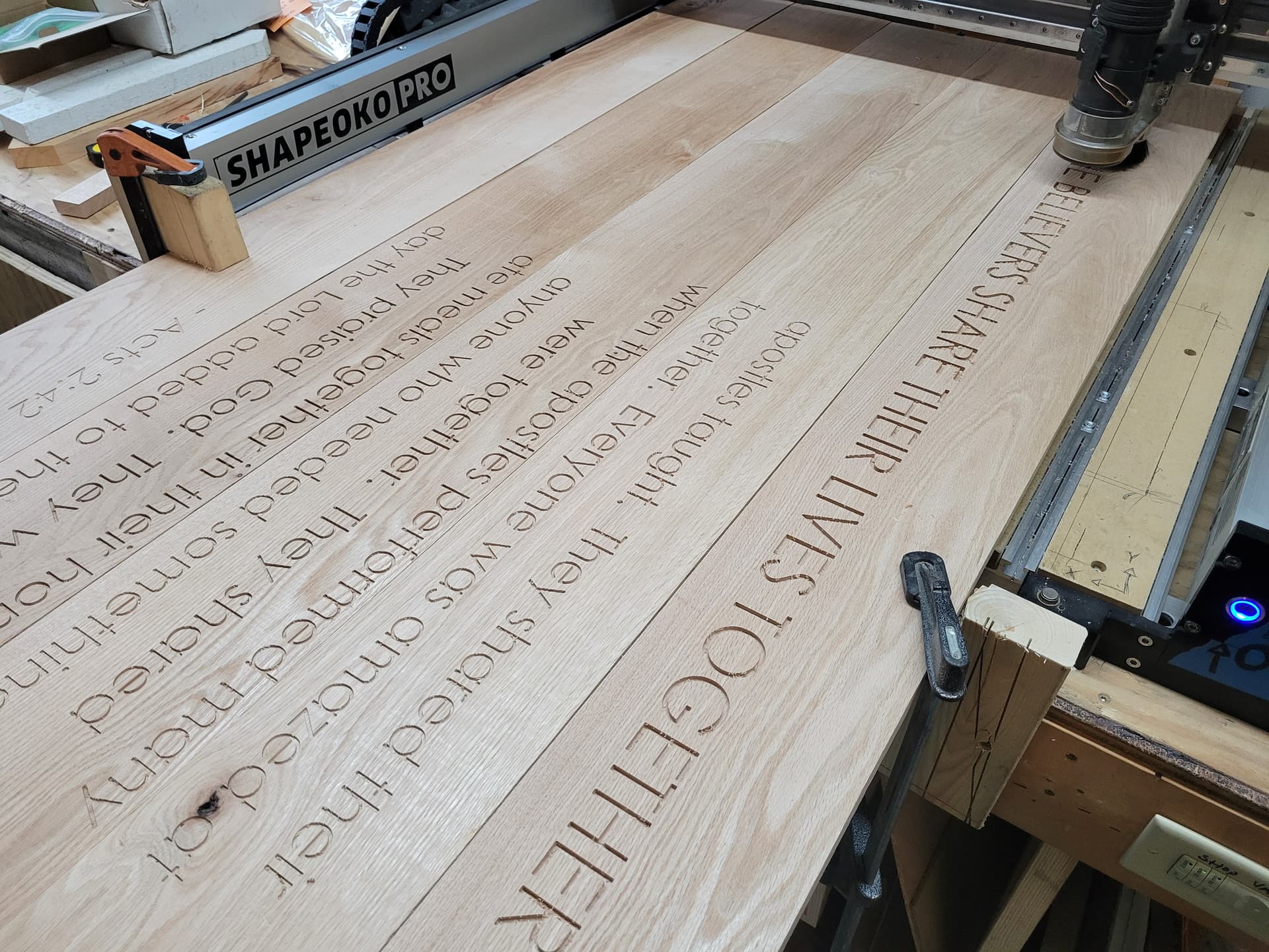 It was a purchased pattern that came as an STL. I used a very small section of the pattern (it was a 28" square pattern and I used a 4" strip that was 28" long) to avoid any repeats. I also played with the depth of cut until I got the look of a “gouged surface” that I was looking for. It called for the use of a specialized bowl bit as well Amana 42954 .