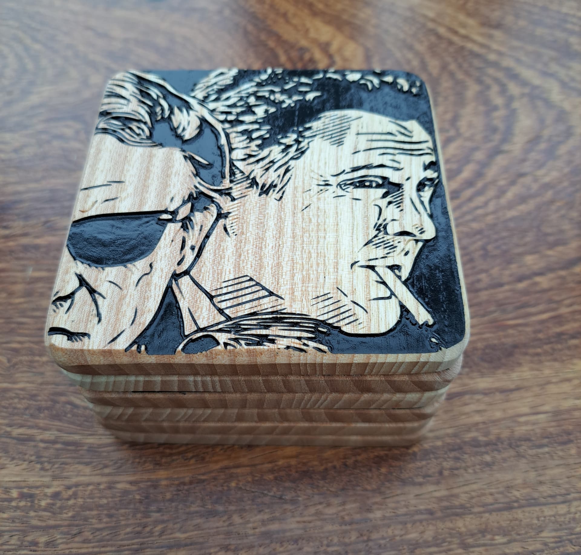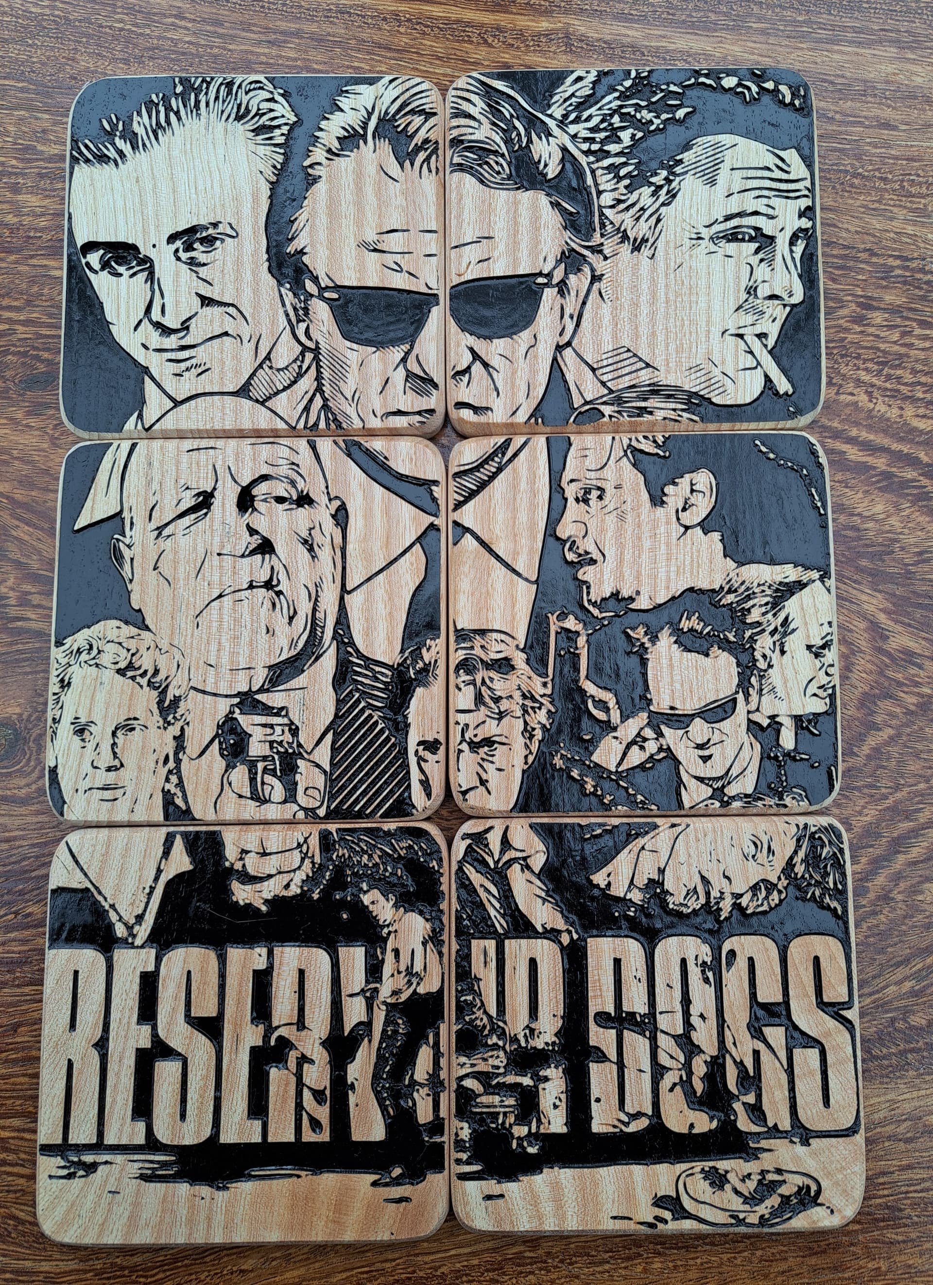 Today I finished a set of six 4" coasters in Ash for a fan of Mr. White & Mr. Blonde et al.