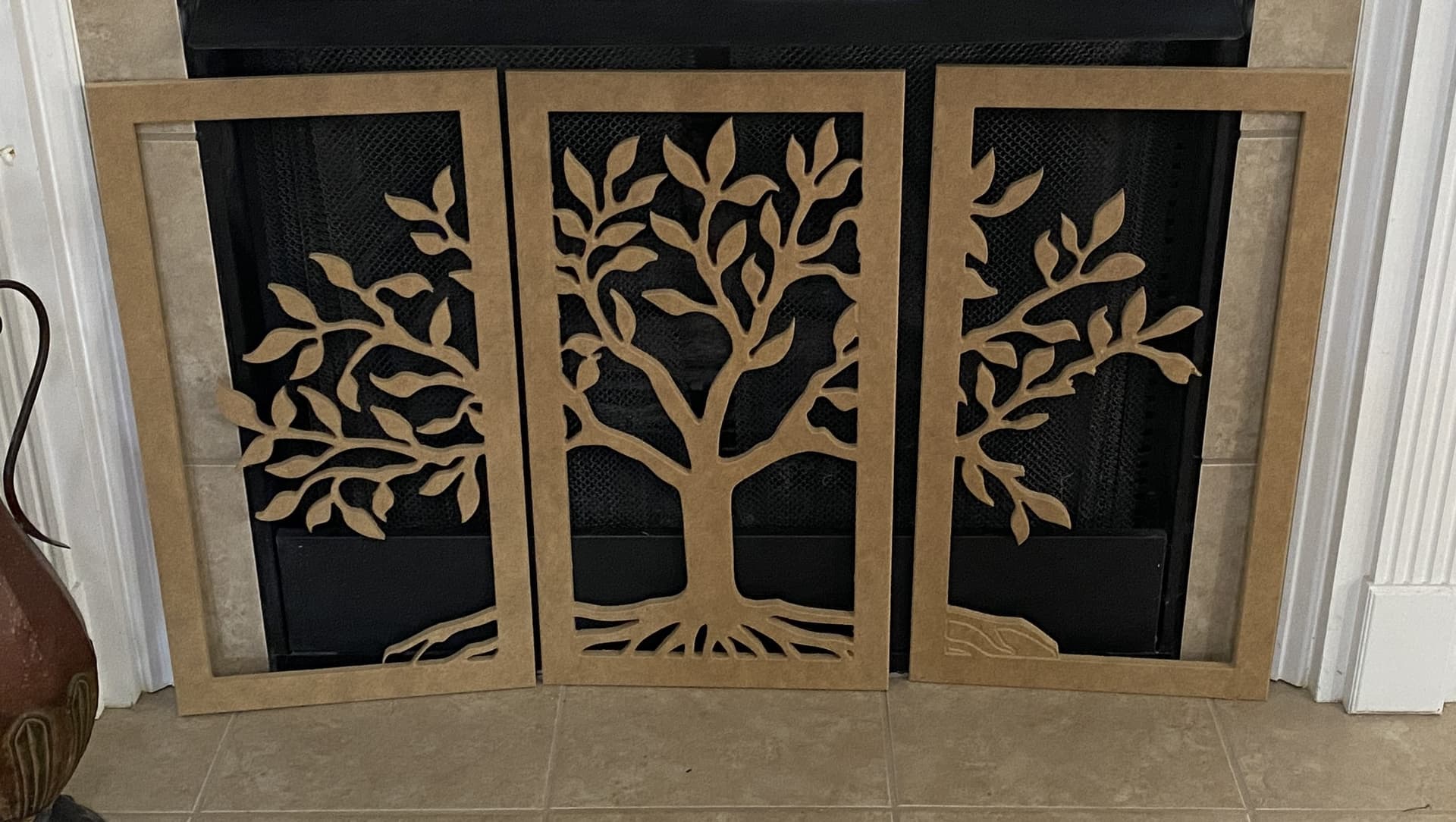 I am making the wife some tree of life panels for the wall. Here is the prototype in MDF. I did mess up the last panel by measuring 0.505" material thickness and entering 0.55" in CC. My tabs disappeared, some branches, and some of the freshly surfaced spoilboard.