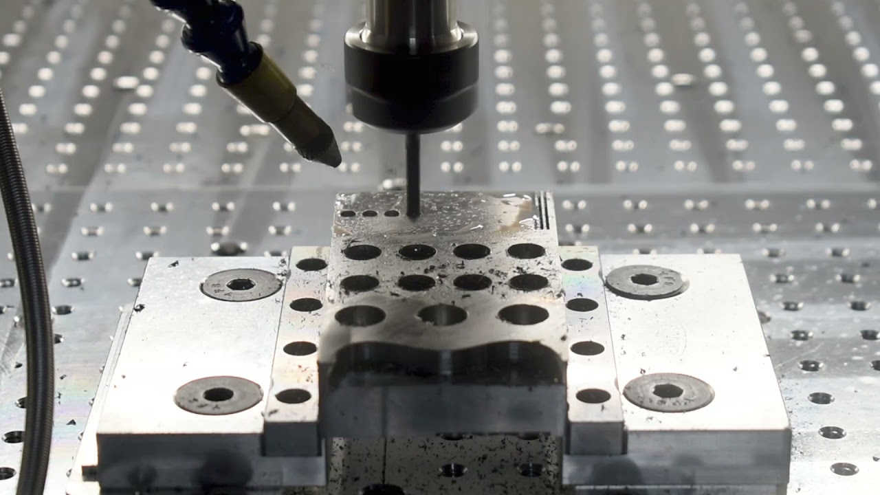 Great improvement in speeds - 3-flute upcut, trochoidal paths, just rippin - 3000mm/min. 2mm radial stock to leave. Then 2-flute downcut to clean up the fuzzies. Most of the wear on the cheap 3-flute upcut.
