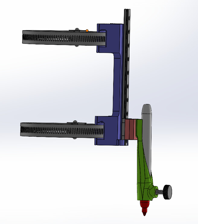 The green part will be removable from the rest of the setup, so it should be a quick color / pen change when needed.