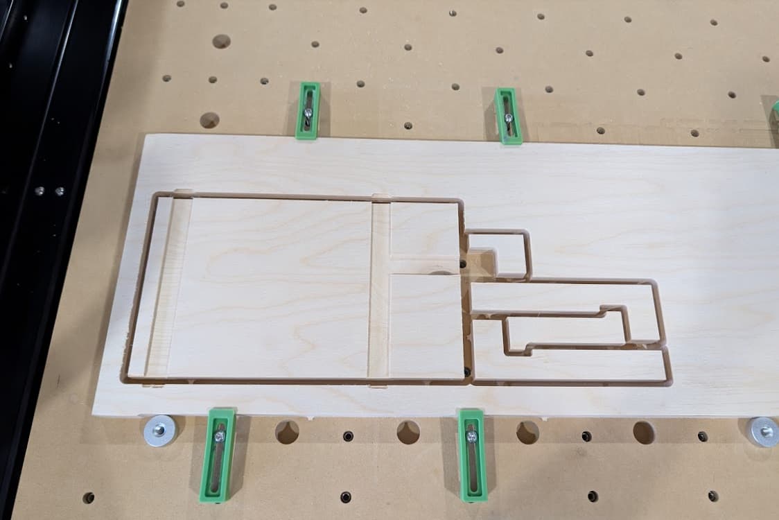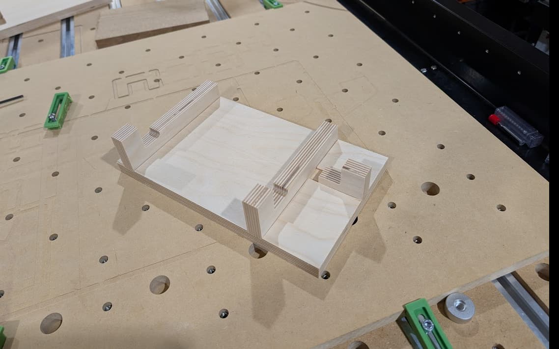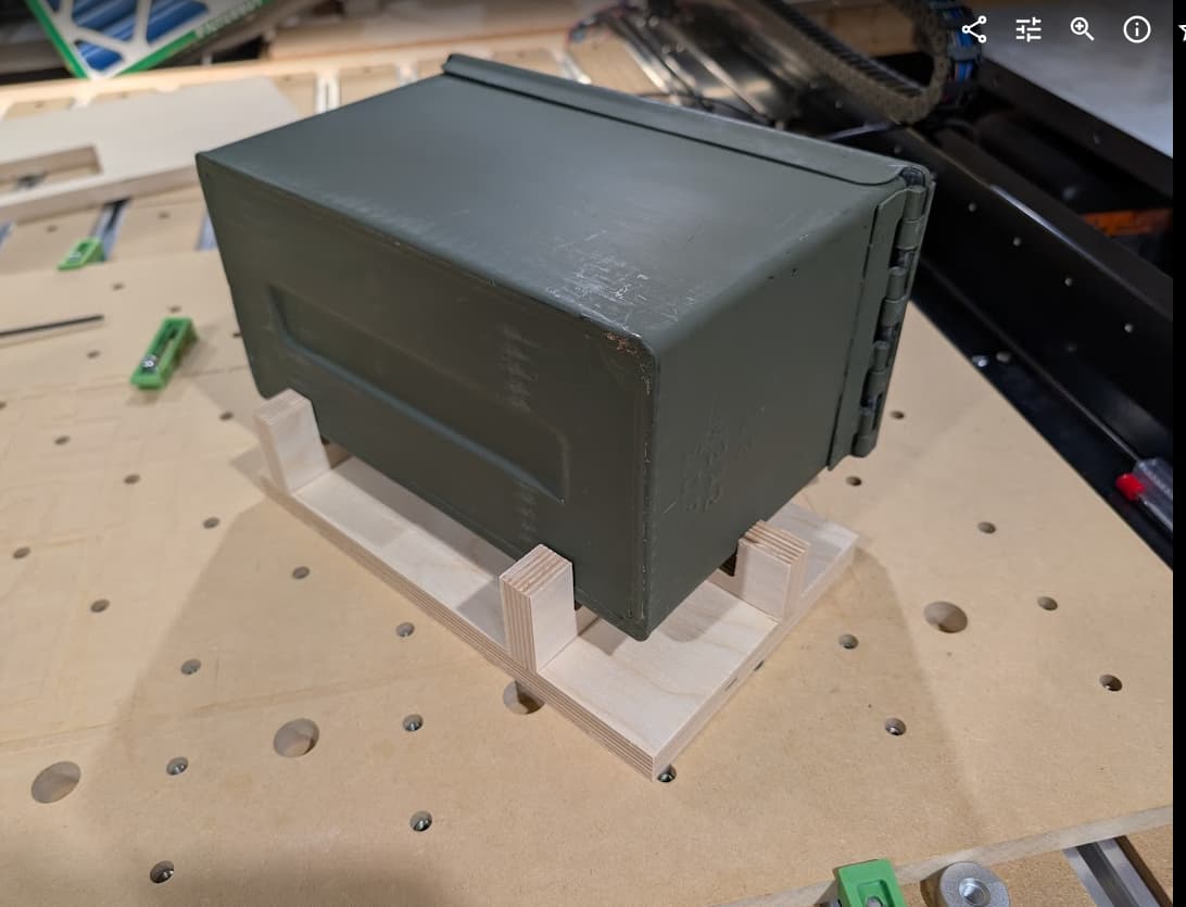 This is for work holding an ammo can for lasering. This keeps a zero corner to allow changes between jobs quickly. I find myself using the cnc for fixtures more and more.