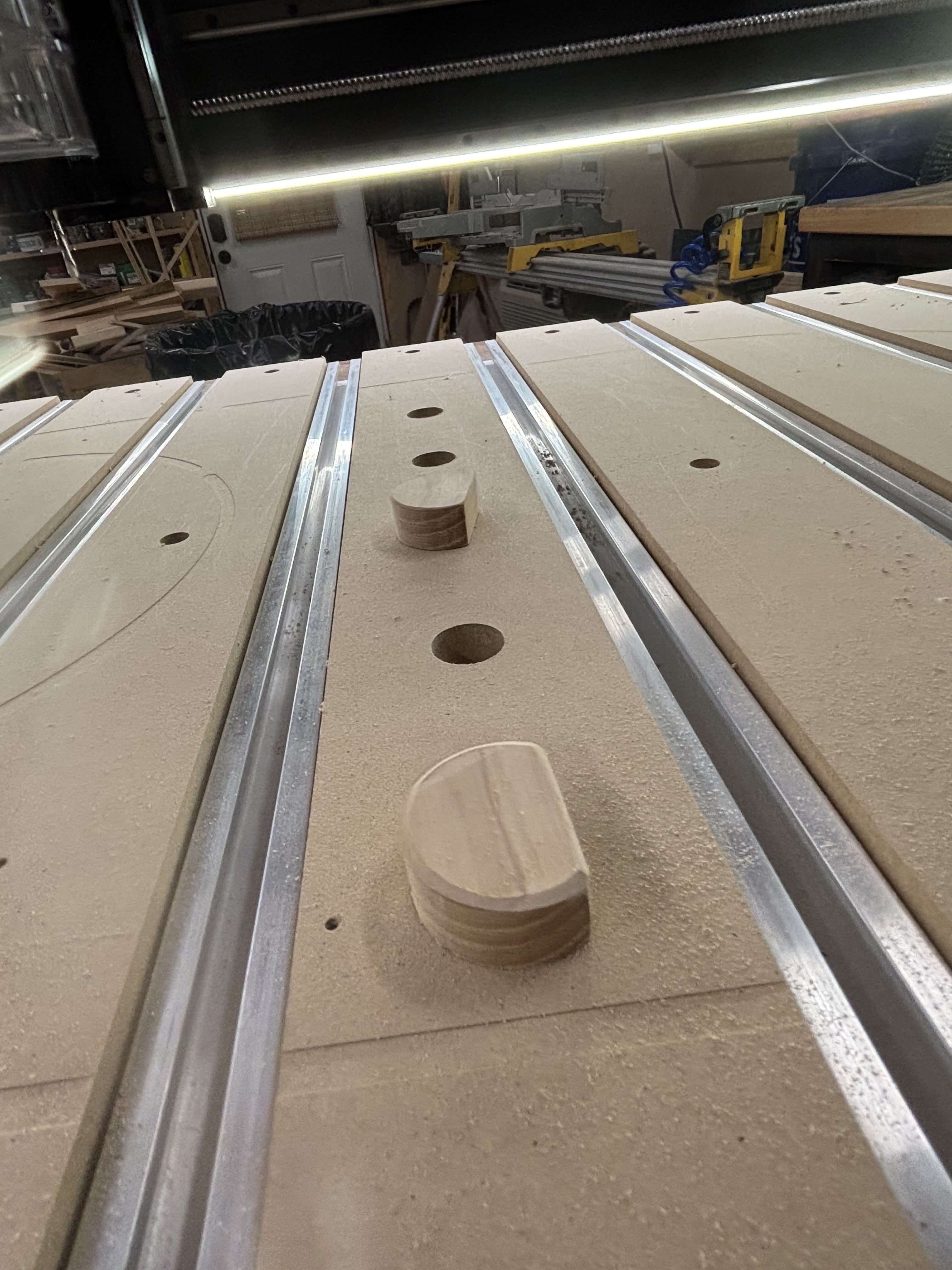 Notice I also placed several dog holes in my spoil boards. This is a great upgrade! Used this set up today for a small sign. Worked great!