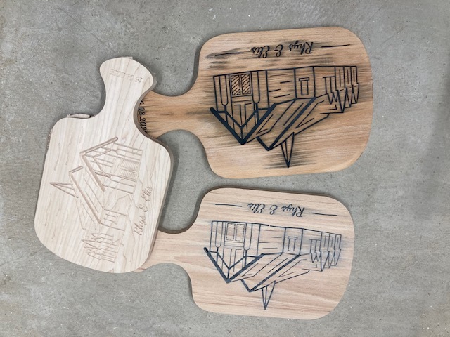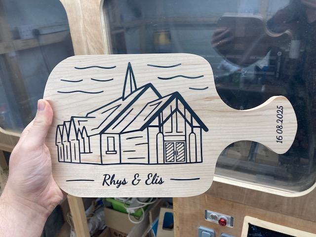 A little wedding present for my friend - I made a charcuterie board/serving board with an epoxy inlay of the church they got married at. Followed some tutorials on youtube on how to trace over the image from google maps using Inkscape to get an SVG. It’s one of a kind!
