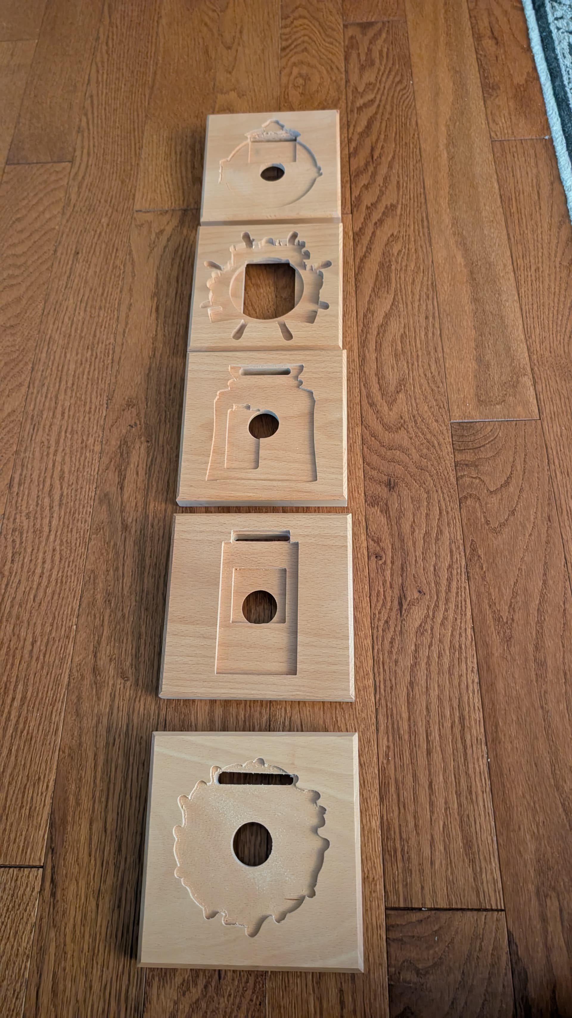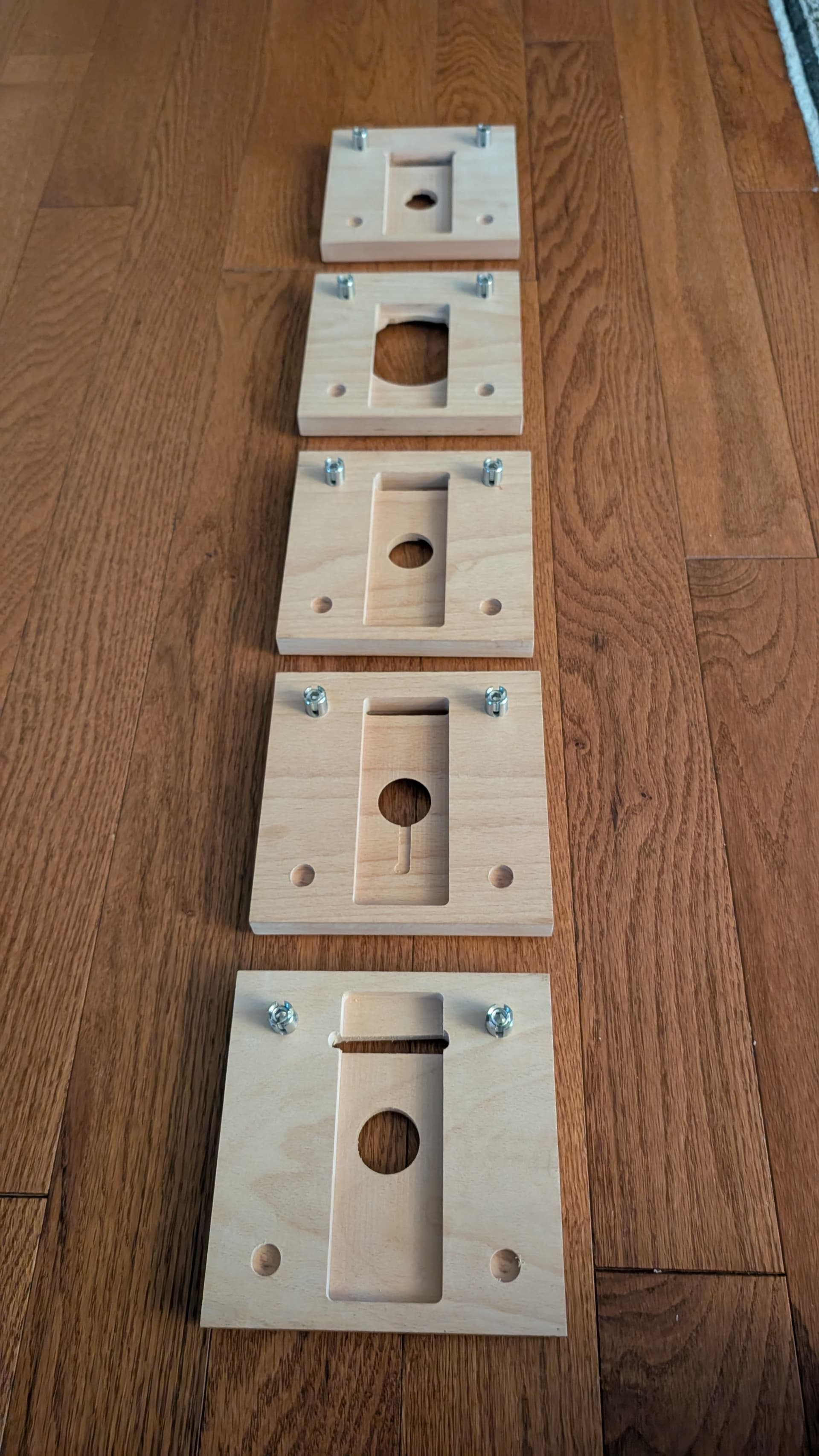Fail 2 (top): Used epoxy ink which stained the whole grain of the wood (ended up using mica powder instead for the successful version)