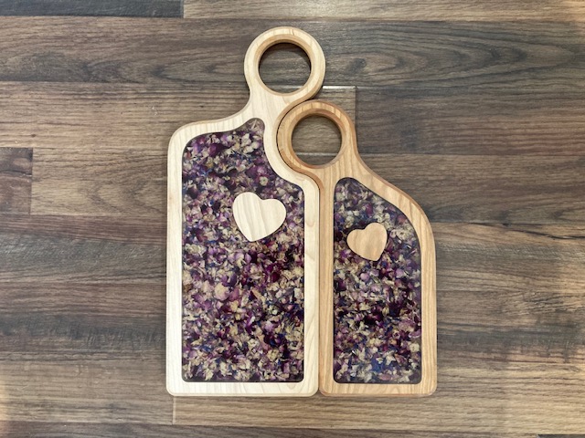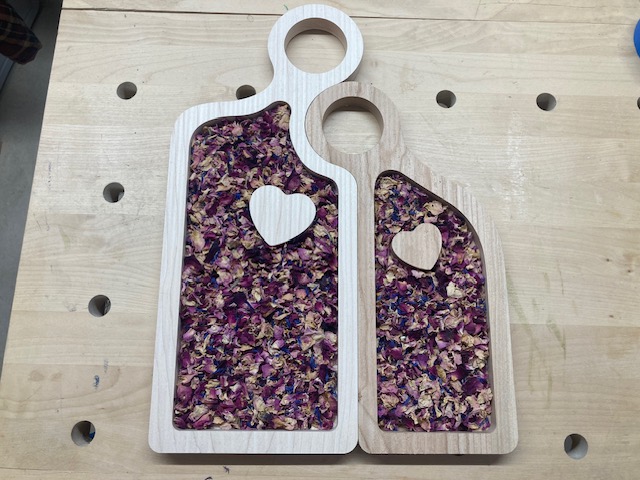 My friends got married recently and they had loads of confetti flowers left over so I made them this “Romeo & Juliet” style charcuterie board set with the flowers preserved inside. Really pleased how they came out and have delivered this gift to the happy couple. I also made some coasters with the wedding flowers but let’s not talk about that as they turned out awfully ![]()