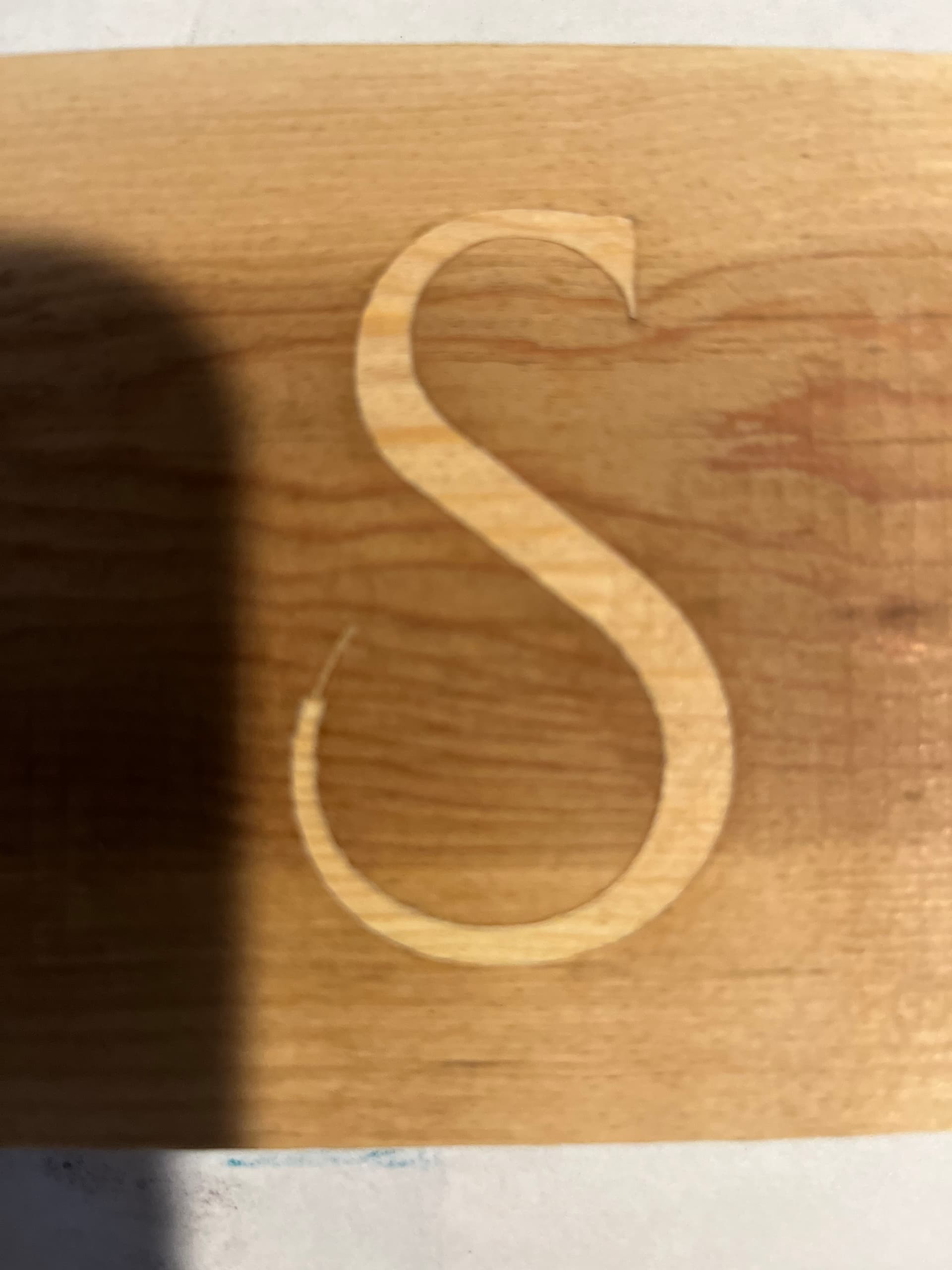 Font is Cinzel Decorative…as you can see tale of the S had an issue with plug…hardwood may have resulted in a better/complete plug.