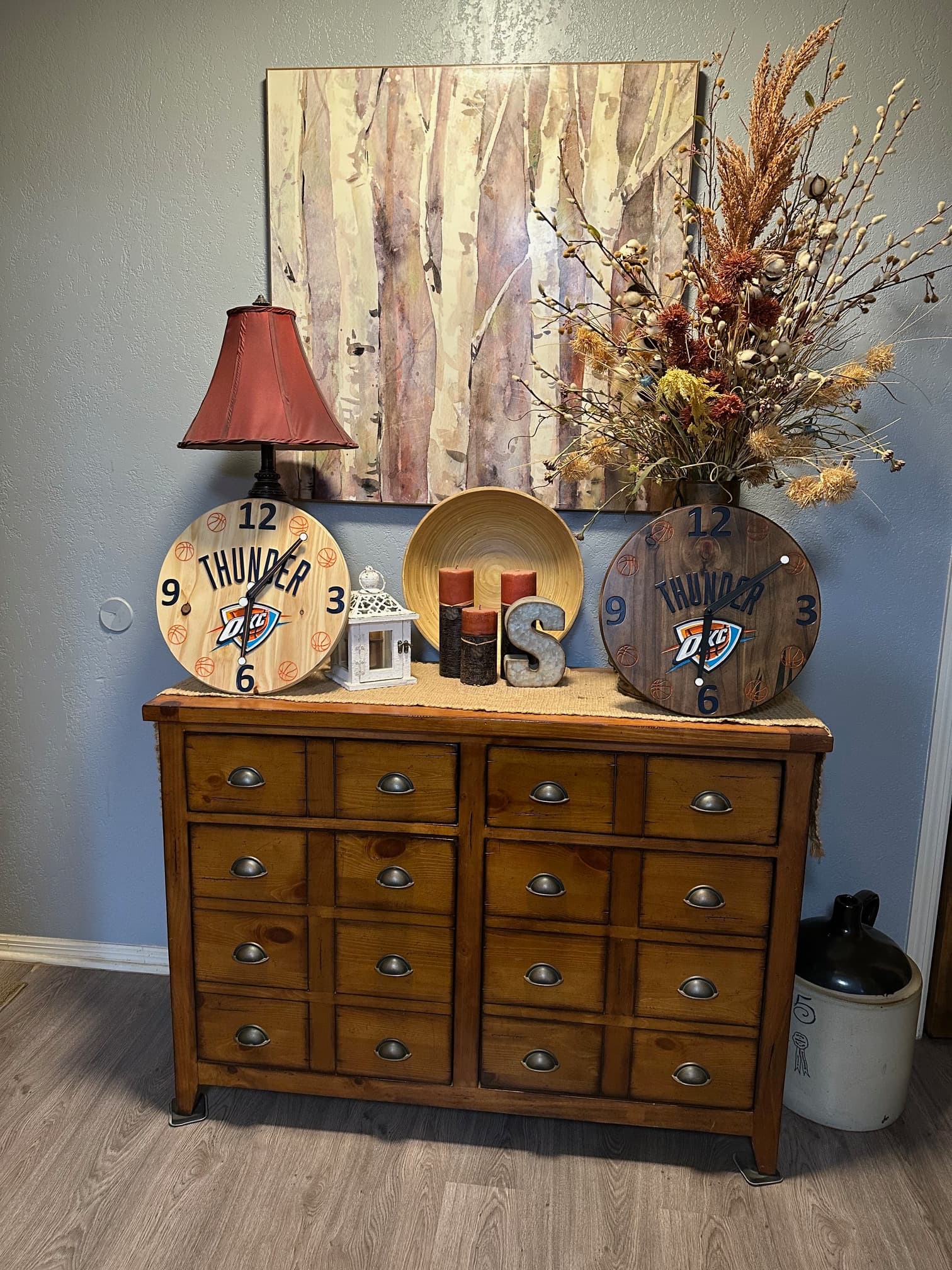 I recently tried my hand at a few clocks to be donated at work so they could be rallied off. The clocks are made from some standard pine stool top blanks you can purchase from Lowes for around $10. The colors inside the team insignia had to be hand painted along with the clock hands which were 3D printed. I’m not really very good at the whole detail painting thing, took so much more time that the actual cutting on the Pro5