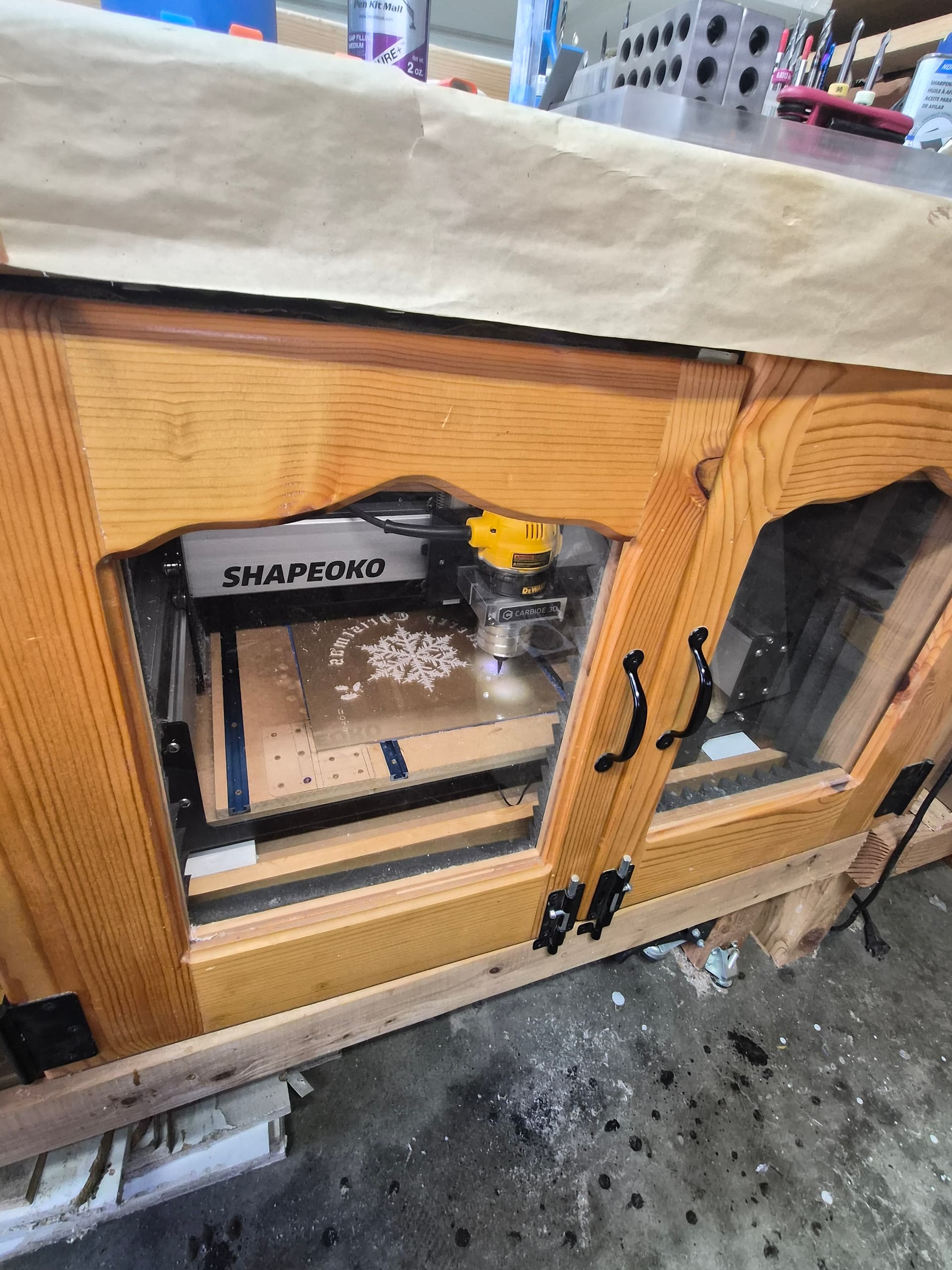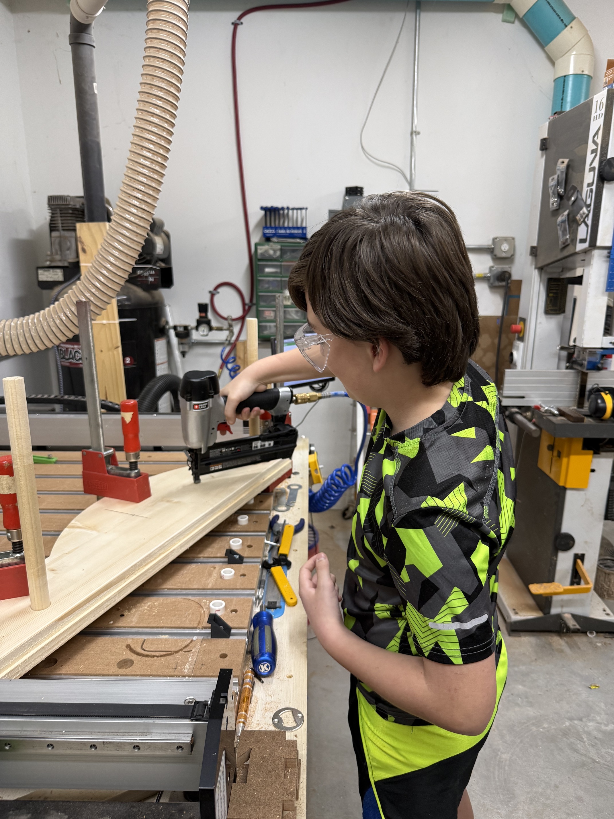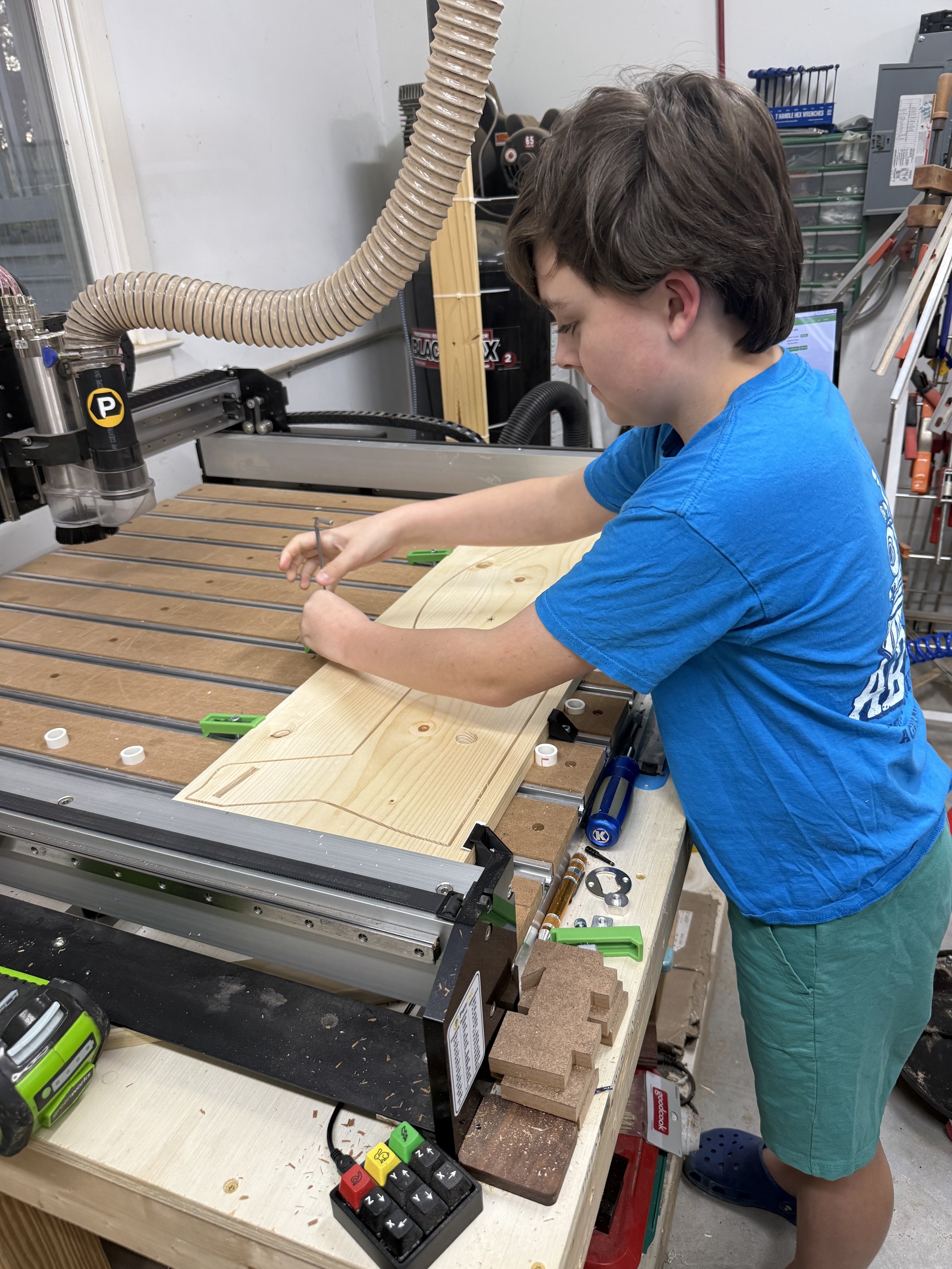 I am helping one of my 10 year old boys with a project. He entered a contest in a woodworking category. There is only so much I trust him with regarding power tools but ai am trying to educate him and we do part of the project on the CNC.