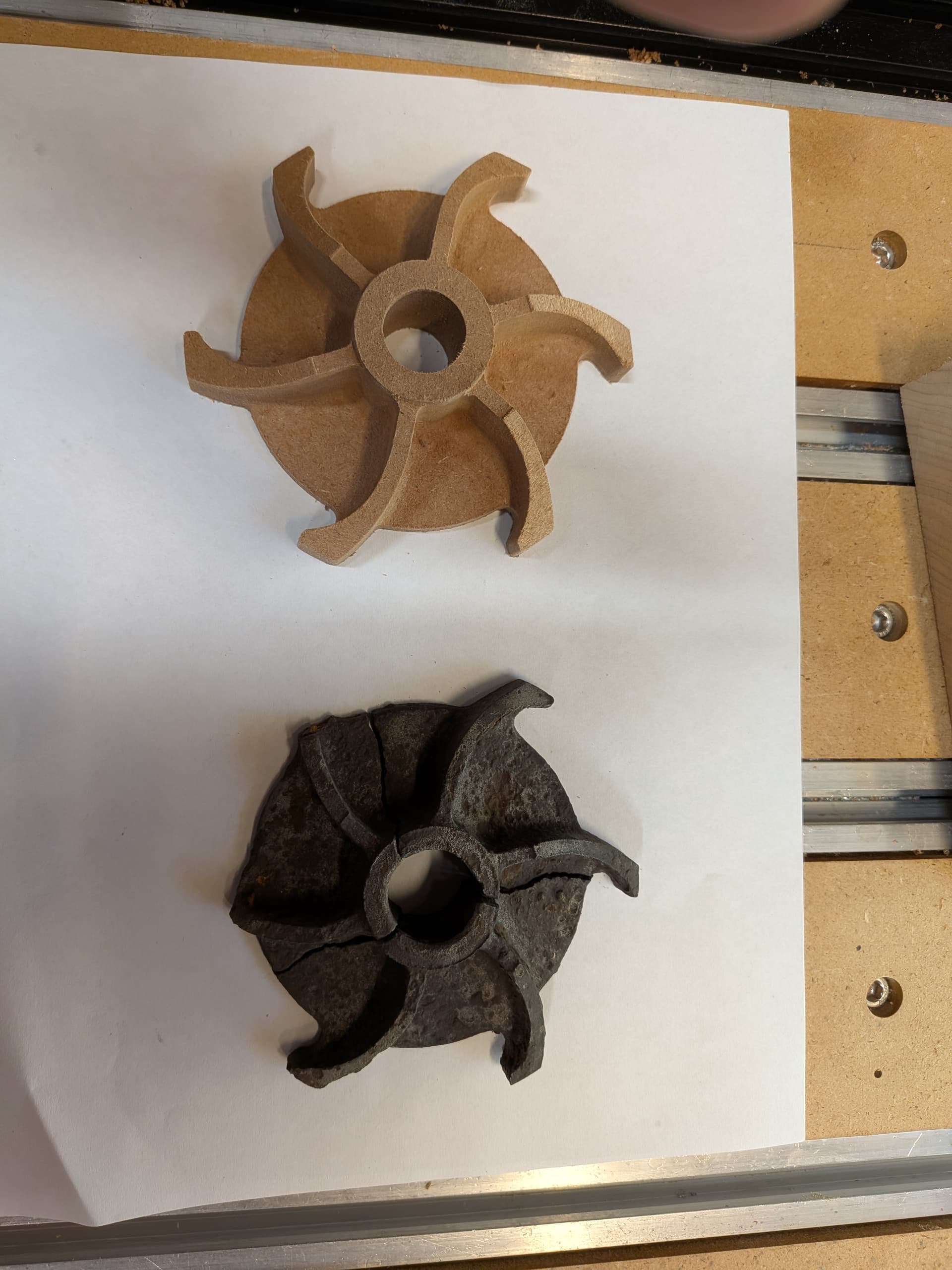 So I was handed a water pump impeller from a 1930’s firetruck water pump in three pieces.