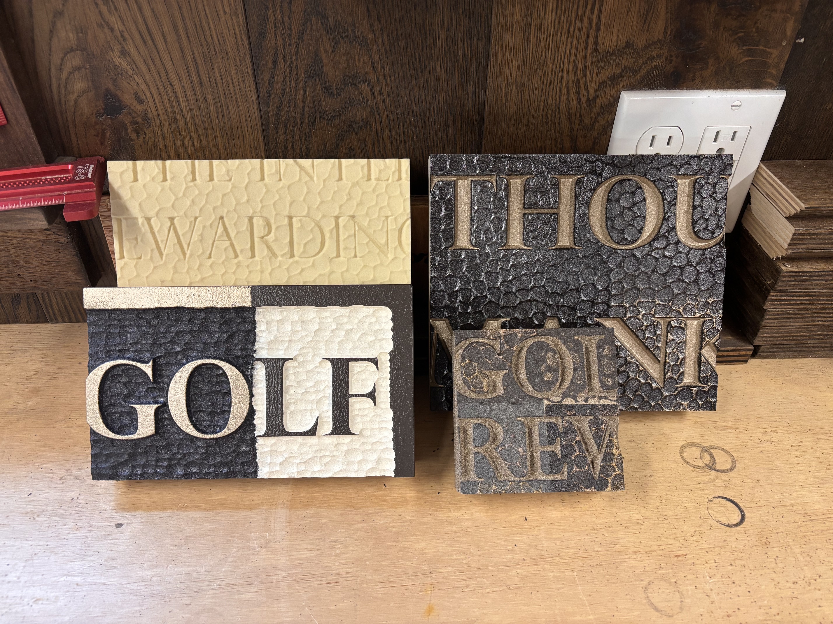 Samples samples samples. We spent a lot of time going through a few textures and color combinations to come up with some options for the customer to choose from… he chose the GO on the left by the way.