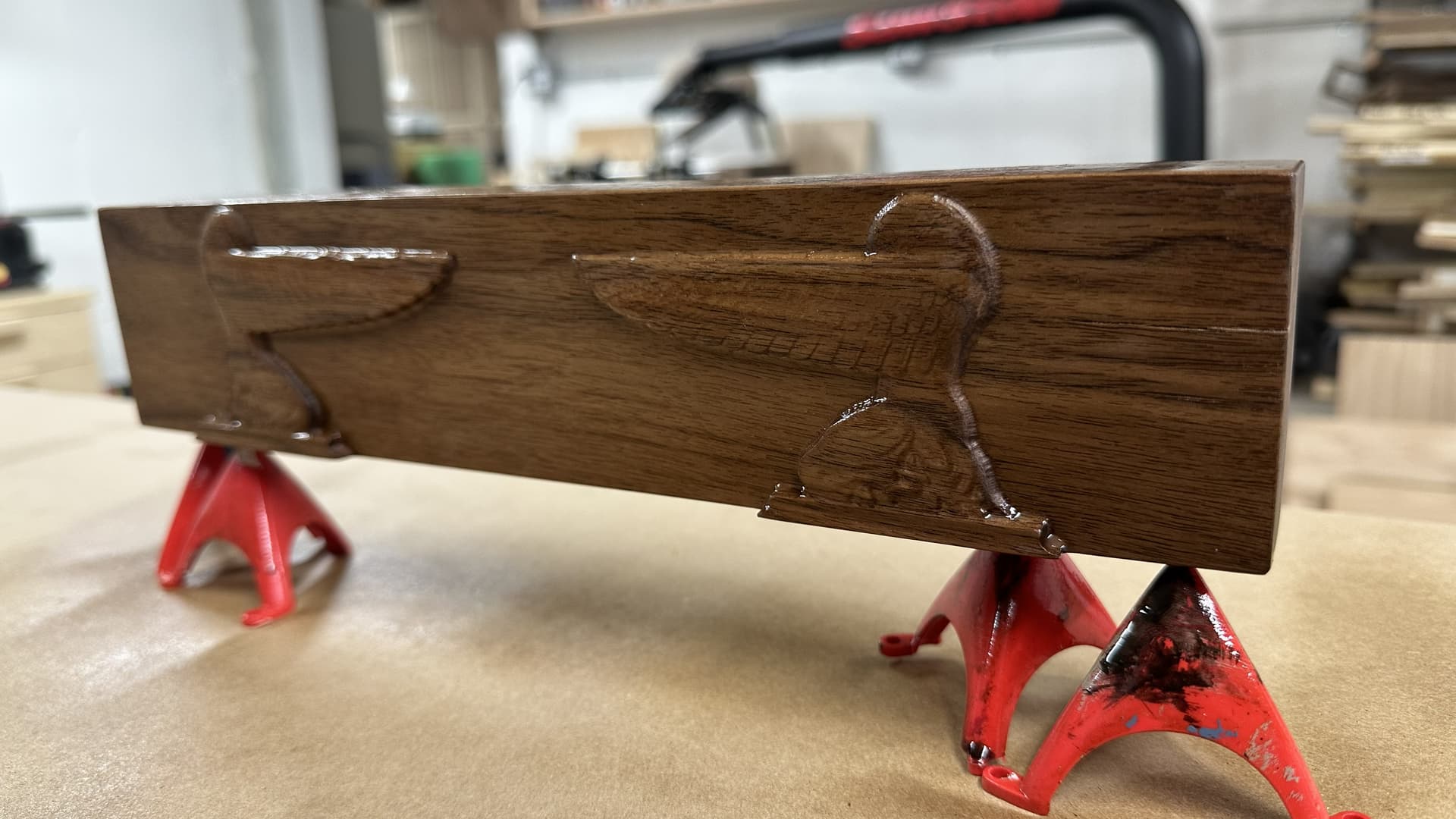 Made a office name plate for a coworker. My finest r.e: fiddliest inlays yet on Indy’s whip. I had to use the Amana Tool 46473, 6.2 Degree bit and lots of custom v carve inlay offset tests in Carbide Create to get the inlay to fit just right. Oh, and a 3d carve of the Cherubin from the top of the Ark of the Covenant on the reverse ![]()